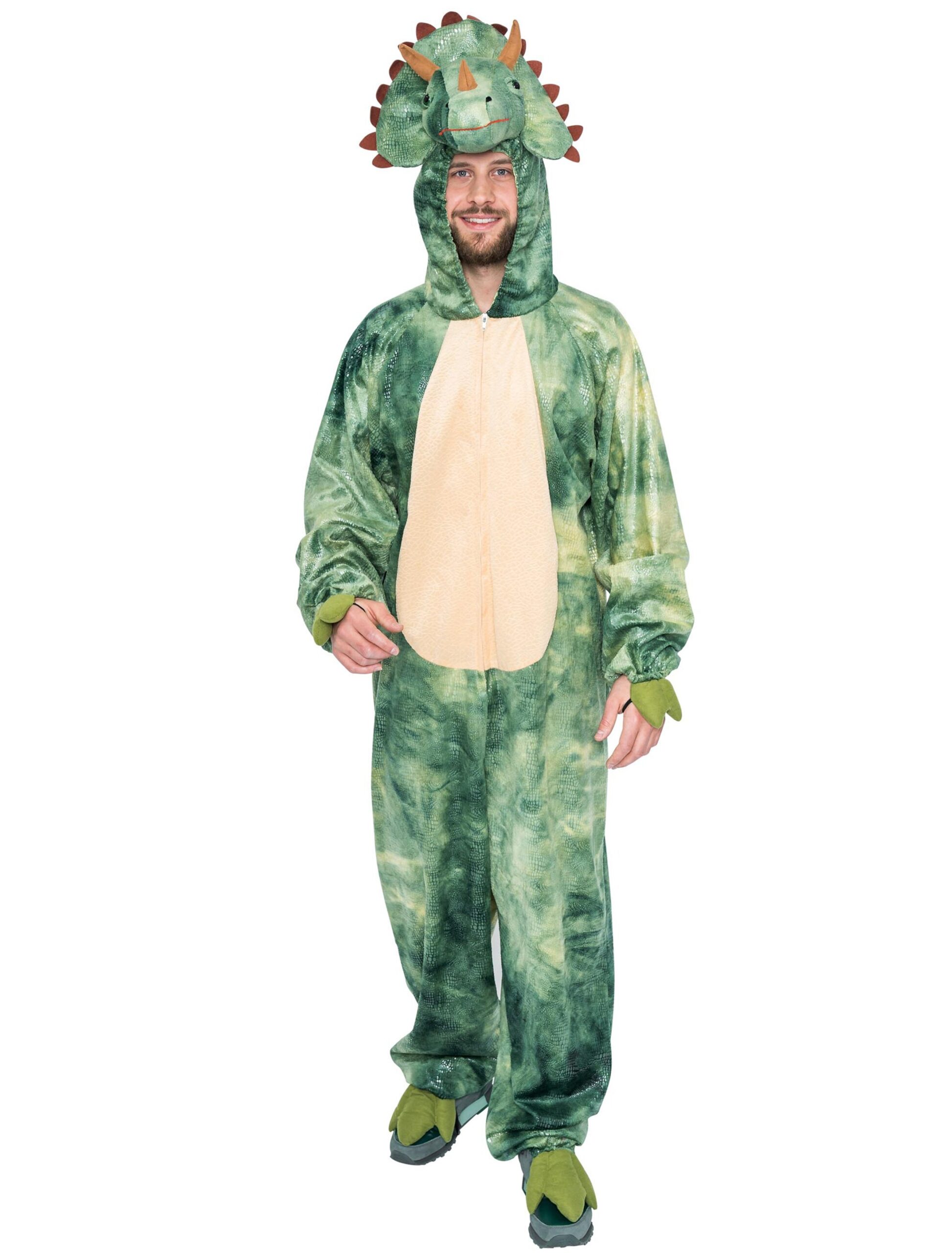 Overall Plüsch Triceratops Herren grün 56/58, ideal für Karneval & Fasching