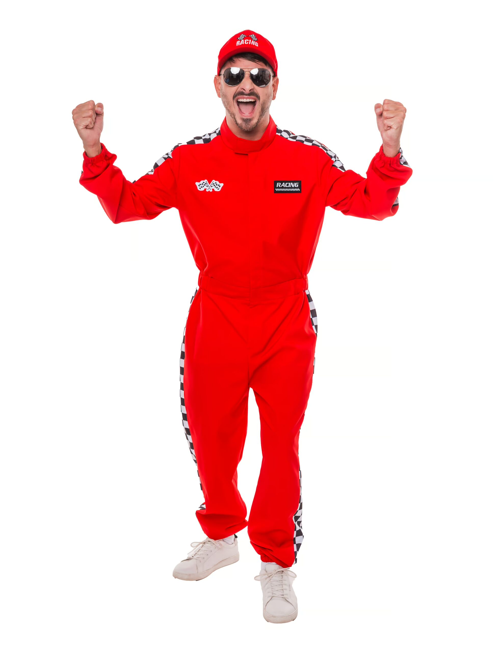 Auf die Plätze, fertig – VOLLGAS! Mit unserem Rennfahrer Overall wirst du nicht nur zum König der Kostüm-Party, sondern siehst dabei auch noch so aus, als hättest du gerade die Ziellinie eines Grand Prix überquert – und das natürlich als Erster! Der Overall kommt im klassischen Racing-Look, mit stylischem Zielflaggen-Design, das jedem direkt klar macht: Hier ist ein echter Vollgas-Profi unterwegs. Zwei coole Zielflaggen und ein Racing Patch sorgen dafür, dass du auch ohne PS ganz offiziell rennstreckentauglich aussiehst. Der Anzug lässt sich einfach per Reißverschluss und Klett schließen – keine Boxenstopps nötig! Egal ob du über die Tanzfläche bretterst, bei der Mottoparty aufs Siegerpodest willst oder einfach nur einen verdammt schnellen Auftritt hinlegen möchtest – dieser Overall bringt dich ins Ziel!