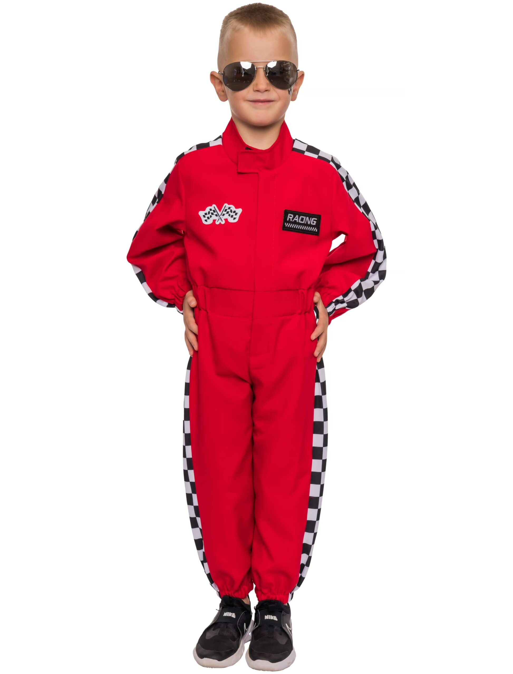 Overall Rennfahrer Kinder rot 116/128, ideal für Karneval & Fasching