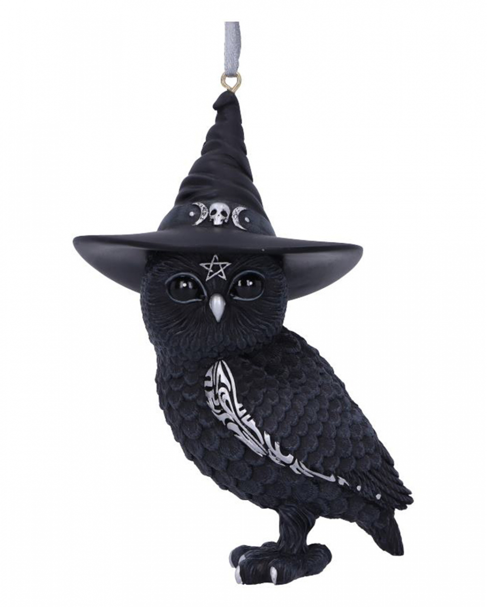 Owlocen Hexeneule Weihnachtsschmuck 12cm Magische schwarze Eule mit Hexenhut als Gothic Hängedeko Die Owlocen Hexeneule als Weihnachtsschmuck und Gothic Deko trägt zu einem mystischen Wohnambiente bei. Hänge die Eulenfigur mit Hexenhut an den Christbaum, an die Decke oder verschenke sie an einen Gothic-Fan! Owlocen Hexeneule Weihnachtsschmuck ist 12 cm groß, besteht aus Kunststein und ist handbemalt. Die schwarze Hexeneule mit Hut trägt ein Pentagramm auf der Stirn und ist ideal als okkulte Geschenkidee und Wohnaccessoire. Lieferumfang: 1 x Owlocen Hexeneule Weihnachtsschmuck 12cm Farbe: Schwarz, Silber Größe: ca. 12 cm Gewicht: 130 g Material: Polyresin (Kunststein) Schwarze Hexeneule Ornament als Weihnachtsschmuck Sammelfigur aus unserer alternative Gothic Weihnachtskollektion Perfekt als Geschenkartikel für Gothic und Halloween Fans Der Artikel ist ein Geschenkartikel. Nicht für Kinder unter 3 Jahren geeignet. Kann Kleinteile enthalten, die verschluckt werden können – Erstickungsgefahr. Von Feuer und offenen Flammen fernhalten.