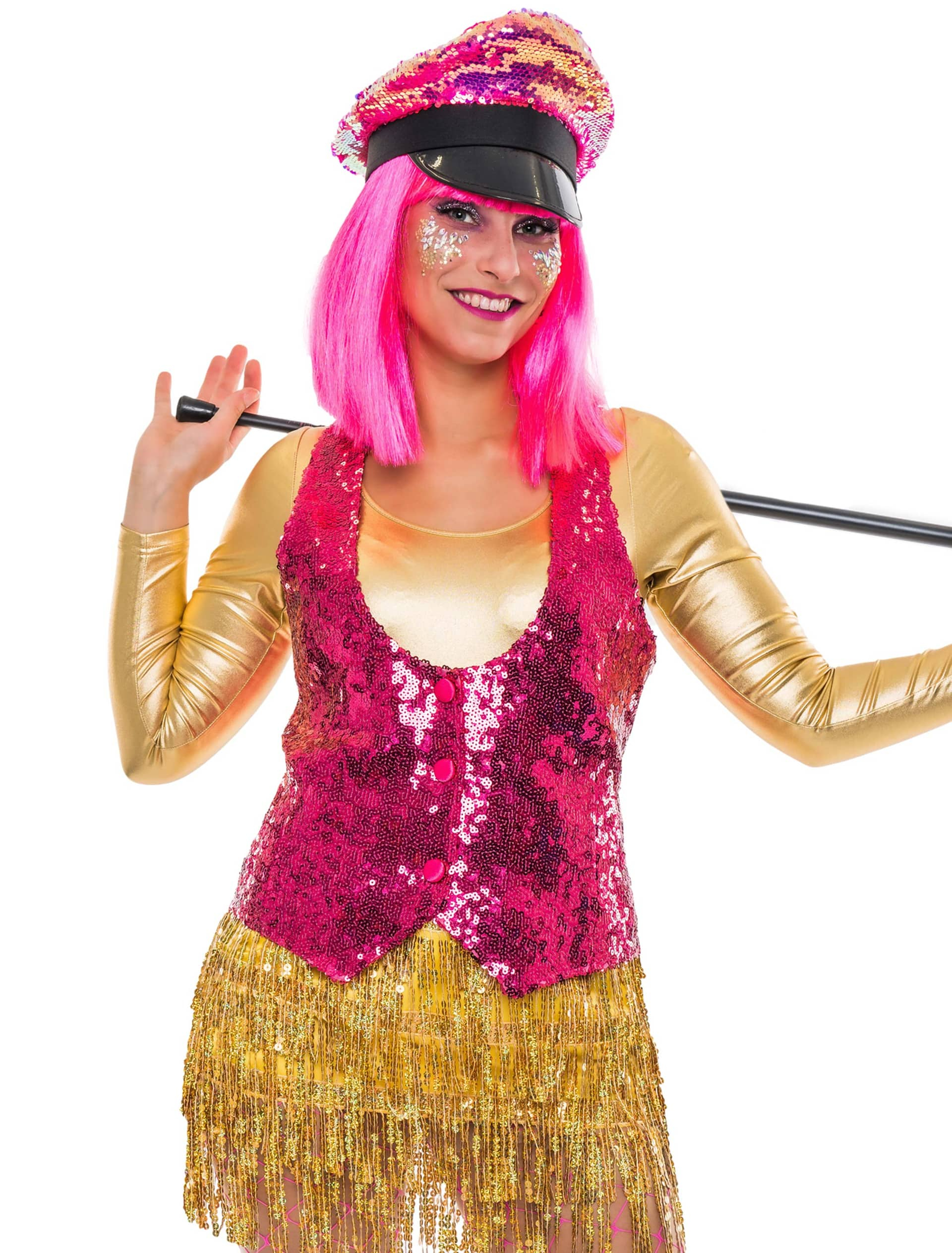Paillettenweste Damen pink 2XL/3XL, ideal für Karneval & Fasching
