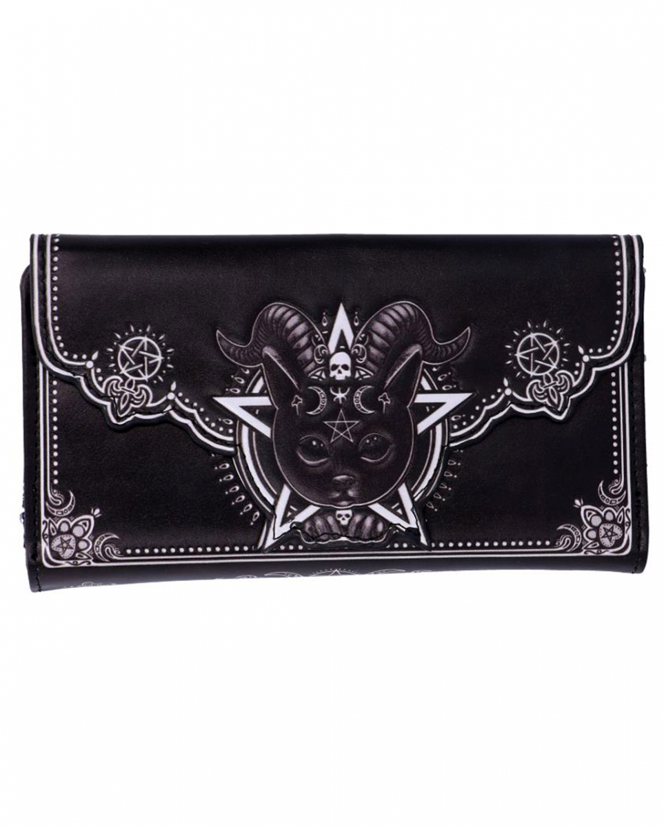 Pawzuph Hexenkatze Geldbörse 18,5cm Verschenke den Gothic Geldbeutel im Wicca und Pagan Style an einen Katzenfan Unsere geprägte Pawzuph Hexenkatze Geldbörse sprüht vor mystischer Energie. In der Katze scheint der Geist von Baphomet zu stecken. Ein Blick in ihre schwarzen Augen scheint wie ein Blick in die Dunkelheit, die in ihr wohnt. Die Pawzuph Hexenkatze Geldbörse besitzt eine klassische Form. Die geprägte Katze mit Ziegenhörnern ist ein echter Blickfang. Der Pawzuph Geldbeutel ist aus Kunstleder gefertigt und hat mehrere Fächer für Karten, Bargeld und Münzen. Lieferumfang: 1 x Pawzuph Kult Cutie Geldbörse 18,5cm Farbe: Schwarz, Weiß, Silber Größe: ca. 18,5 cm Gewicht: 210 g Material: Kunstleder Außergewöhnlicher Gothic Geldbeutel für Katzenliebhaber Mit Pentagramm und Ziegenhörner und Totenschädel als Verzierung Mehrere Fächer für Karten, Bargeld und Münzen Pawzuph Katze aus der Kult Cutie Reihe Der Artikel ist ein Accessoire für Erwachsene und kein Spielzeug. Nicht für Kinder unter 3 Jahren geeignet. Kann Kleinteile enthalten, die verschluckt werden können – Erstickungsgefahr. Von Feuer und offenen Flammen fernhalten.