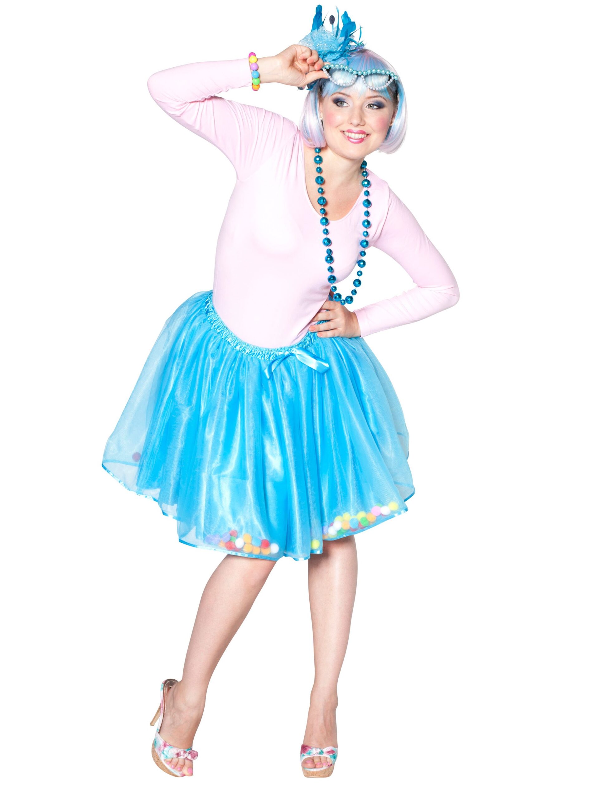 Rock ‘n’ Roll Baby! In diesem Petticoat tanzt Du Dich im boogy woogy Stil zurück in die 50er Jahre des Rock ‘n’ Roll! Der süße verspielte Rock ist aus türkisfarbenem transparentem Stoff gefertigt. Durch mehrere Lagen erhält er Blickdichte und die typische aufgebauschte Form eines Petticoats. Im unteren Saum befinden sich insgesamt 120 bunte Pompons, die Deinem Kostüm einen verspielten Ausdruck verleihen. Der elastische Bund sorgt für bequemen Tragekomfort und kann in der Front mit einer süßen Schleife gebunden werden. Der Rock lässt sich ideal zu allen Kostümideen kombinieren und kann mit einer Perücke und Schmuck ganz im 50ies Stil gestylt werden. Ob auf Deiner Karnevals- oder 50er Jahre Mottoparty, in diesem Rock bist Du ein echtes Pin-Up-Girl mit Stil!