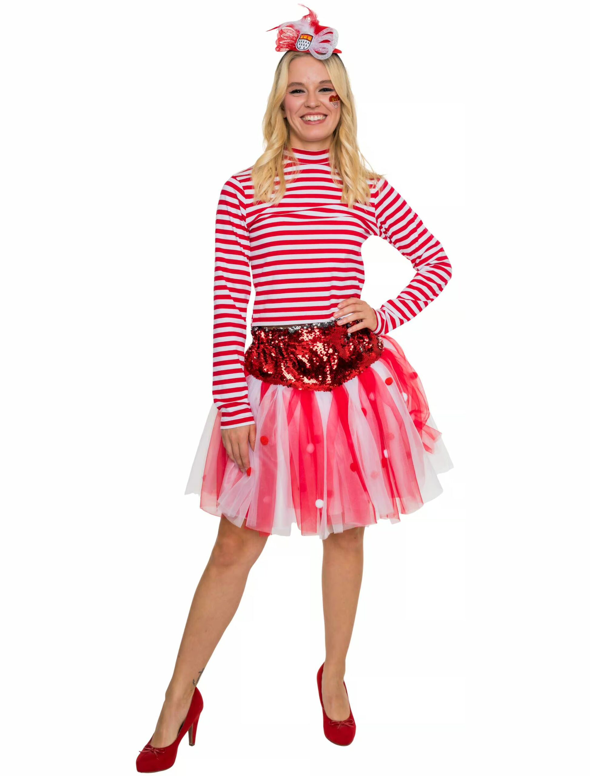 Verwandle die Tanzfläche und jede Kostümparty in ein kunterbuntes Spektakel – Schnapp dir unseren zweifarbigen Petticoat! Der Bund? Funkelnde Pailletten, die im Licht so glitzern, dass du quasi Disco-Kugel-Status erreichst. Der Tüll? Locker-luftig und in zweifarbigen Streifen gehalten, die bei jeder Bewegung zauberhaft mitschwingen. Und als ob das nicht genug wäre, gibt’s noch Pompoms obendrauf! Diese kleinen, fluffigen Hingucker hüpfen fröhlich mit dir durch die Nacht und sorgen dafür, dass dein Look garantiert niemand vergisst. Ob du als spritzige Tänzerin, verrückte Harlekin-Queen oder bunteste Fee aller Zeiten unterwegs bist – dieser Petticoat ist die perfekte Wahl. Bring Schwung, Glanz und eine Extraportion Spaß auf jede Party!