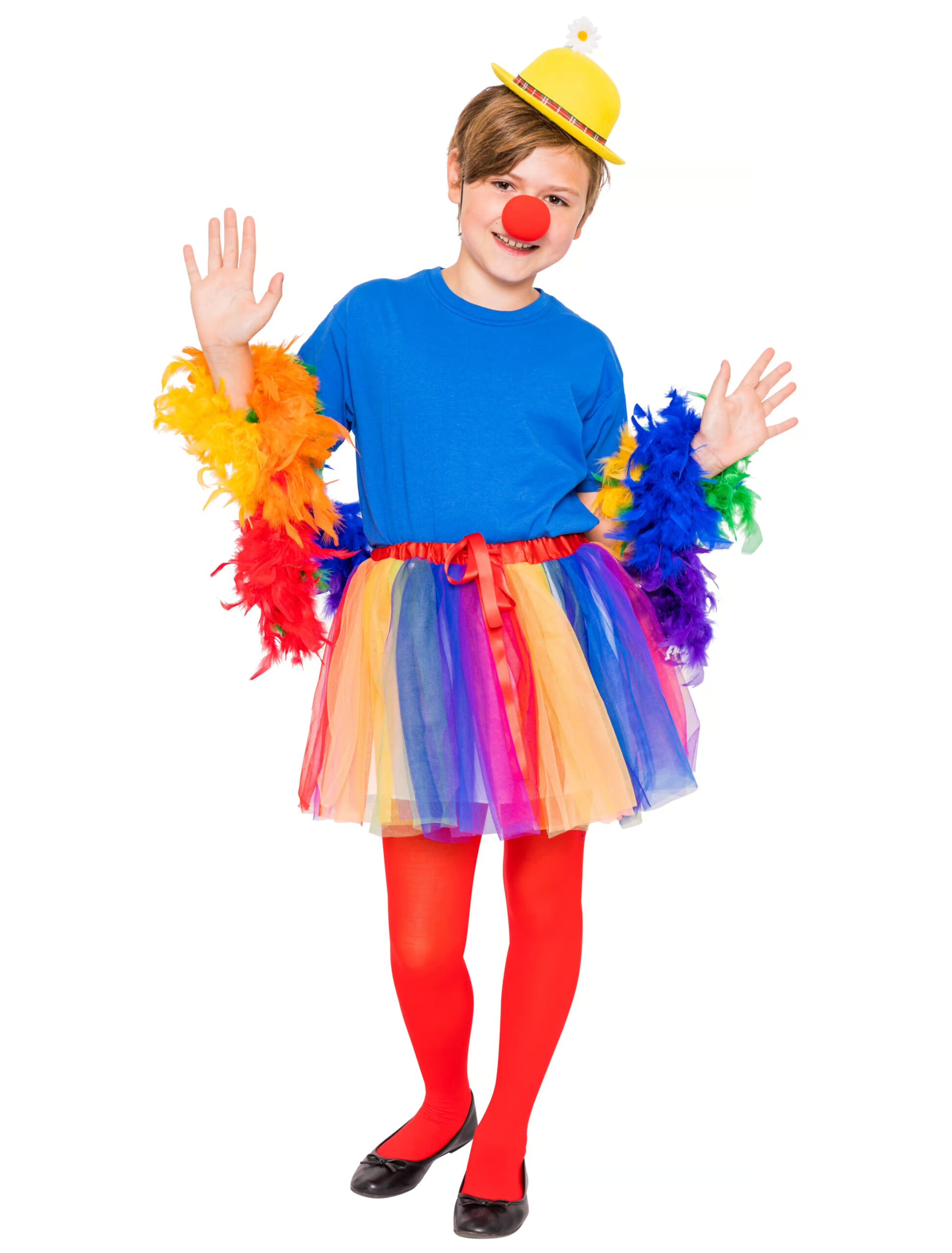 Schön bunt ist der Petticoat Rainbow für Kinder aus Polyester, der mit seinen leuchtenden Regenbogenfarben die Fantasie anregt und auch Dein Kind begeistern wird. Der Regenbogen Kinder Petticoat besteht aus einer Lage buntem Tüll und ist am Bund mit einem Gummizug und Bindeband versehen. Er ist das perfekte Röckchen für ein freches und süßes Clownkind oder ein bezauberndes Regenbogen Mädchen. Mit den passenden Kostümteilen und Accessoires aus unserem Shop wird Dein selbst zusammengestelltes Kinderkostüm sicher ein Hingucker.