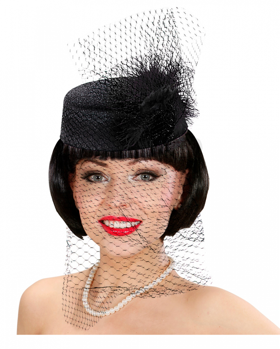 Pillbox Hut Jackie schwarz mit Federn