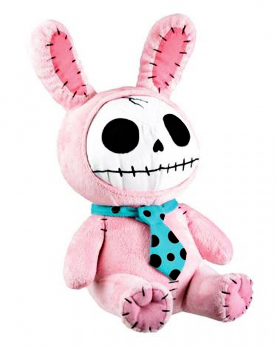 Pink Bun Bun als knuffige Furrybones Plüschfigur 30 cm Verschenke die knuffige Skelettfigur im Hasenkostüm an einen Gothic Fan Die Pink Bun Bun als knuffige Furrybones Plüschfigur ist eine kuschlige Verwandte der verrückten Furrybones Skelettfiguren. Die kleinen freundlichen Wesen lieben es, sich zu verkleiden. Und Pink Bun Bun mag eben Häschen. Du auch? Die Pink Bun Bun als knuffige Furrybones Plüschfigur ist eine weiche Variante der kultigen Skelettfiguren. Die Puppe trägt ein rosafarbenes Kostüm mit Hasenohren auf dem Kopf und einer Krawatte um den Hals. Das freundliche Skelettgesicht strahlt dich an. Lieferumfang: 1 x Pink Bun Bun als knuffige Furrybones Plüschfigur 30cm Farbe: Pink, Weiß, Schwarz, Türkis Größe: ca. 30 x 25 x 17 cm Material: 100% Polyester Niedliches Skelett Häschen als Furrybones Kuscheltier Zauberhaft als Gothic Deko und Geschenk Für Sammler der Furrybones Figuren ein Muss! Alternatives Gothic Wohnaccessoire Nicht für Kinder unter 3 Jahren geeignet. Kann Kleinteile enthalten, die verschluckt werden können – Erstickungsgefahr. Von Feuer und offenen Flammen fernhalten.