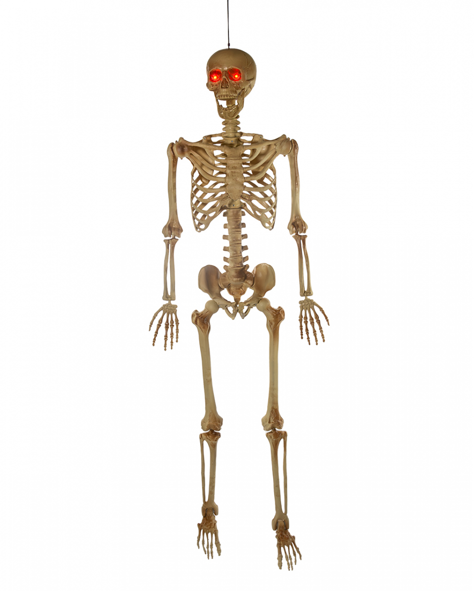 Flexibel Positionierbares Skelett mit roten Leuchtaugen 165 cm Halloween Skelett im Geisterbahnlook mit flexibel platzierbaren Knochen und LED-Augen Tauche ein in die schaurige Welt der Horrorliebhaber mit dem flexibel positionierbaren Skelett, dessen Augen in rot erstrahlen. Mit seinen flexiblen Knochen lässt es sich gruselig dekorieren und schafft eine einzigartige Atmosphäre voller Angst und Schrecken für deine Halloween-Party. Mit einer Größe von ca. 165 cm (stehend) ragt das antik aussehende Skelett eindrucksvoll in die Höhe und wird zum Blickfang jeder Horror-Deko. Das Skelett benötigt 3 x AA-Batterien (nicht inklusive), um seine roten Leuchtaugen zum Strahlen zu bringen. Lieferumfang: 1 x Flexibel Positionierbares Skelett mit roten Leuchtaugen 165 cm Farbe: Beige, Braun, Rot Größe: ca. 165 cm (stehend) Batterien: Es werden 3 x AA-Batterien benötigt, nicht inkl. Material: Kunststoff Antik aussehendes Skelett mit roten LED-Leuchtaugen Verschieden positionierbare Knochenteile zum flexiblen Dekorieren Fantastische Halloween Dekoration und Requisite im Geisterbahnlook Perfekt zum Positionieren, Anziehen und Perfektionieren deiner Halloween-Deko Für den Innen- oder überdachten Außenbereich Batterien nicht inkl.