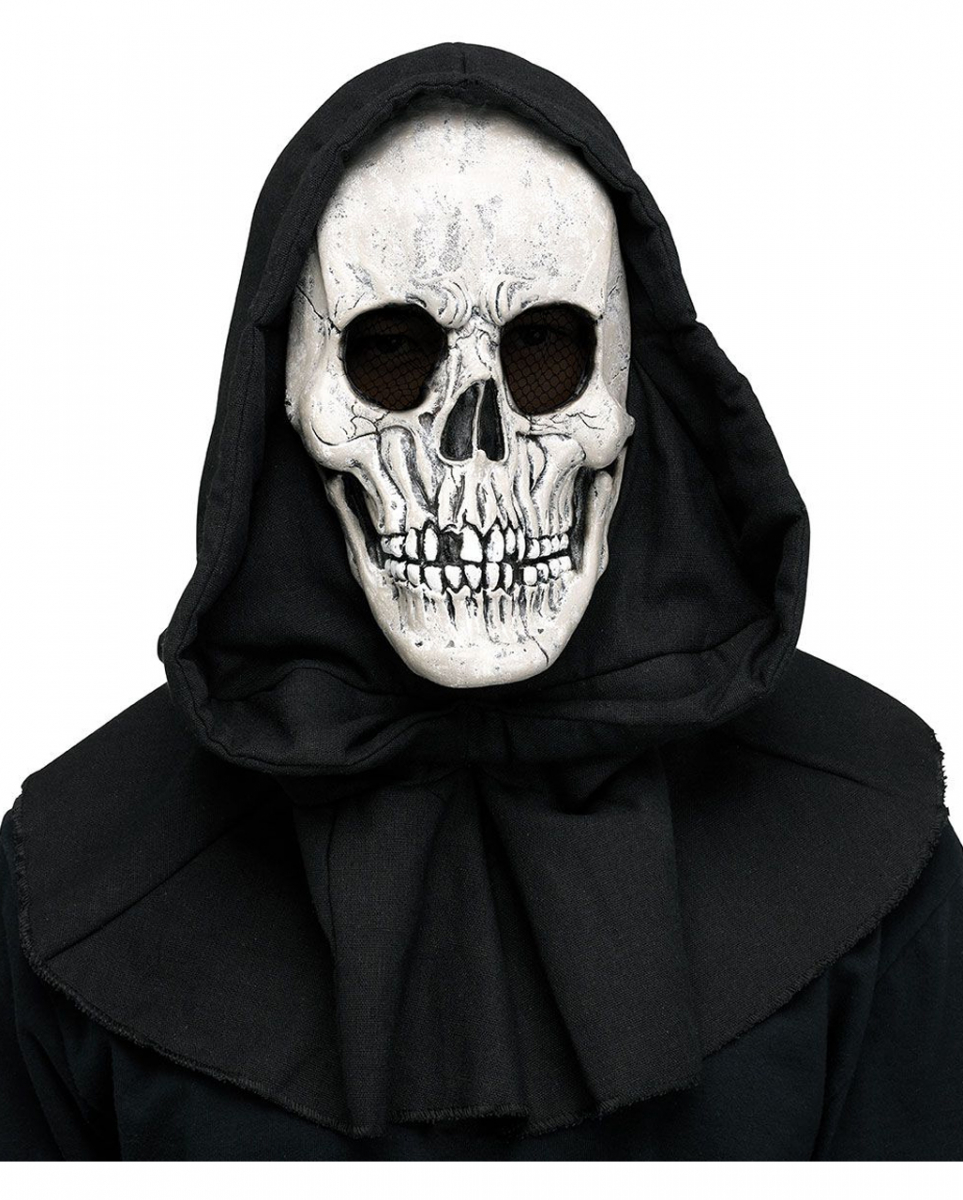 Reaper Maske mit Kapuze für Halloween Grauenhafte Sensenmann Kapuzenmaske als Horror Kostümzubehör Sammle als Sensenmann die Seelen der Toten ein und trage dazu dieses unheimliche Kostümaccessoire. Die Reaper Maske mit Kapuze für Halloween verwandelt dich in eine Schreckgestalt aus der Anderswelt. Die Reaper Maske mit Kapuze für Halloween ist aus PVC gefertigt und mit einer Kapuze aus weichem Stoff versehen. Sie passt fast allen Erwachsenen und ist mit dunklen Augennetzen ausgestattet. Lieferumfang: 1 x Reaper Maske mit Kapuze für Halloween Farbe: Schwarz, Weiß, Grau Größe: One Size für Erwachsene Material: Maske aus PVC, Kapuze aus 100% Polyester Grim Reaper Kostümzubehör Augen sind mit dunklen Netzen hinterlegt Kostüm separat verfügbar Der Artikel ist ein Kostümzubehör für Erwachsene und kein Spielzeug. Nicht für Kinder unter 3 Jahren geeignet. Kann Kleinteile enthalten, die verschluckt werden können – Erstickungsgefahr. Von Feuer und offenen Flammen fernhalten.