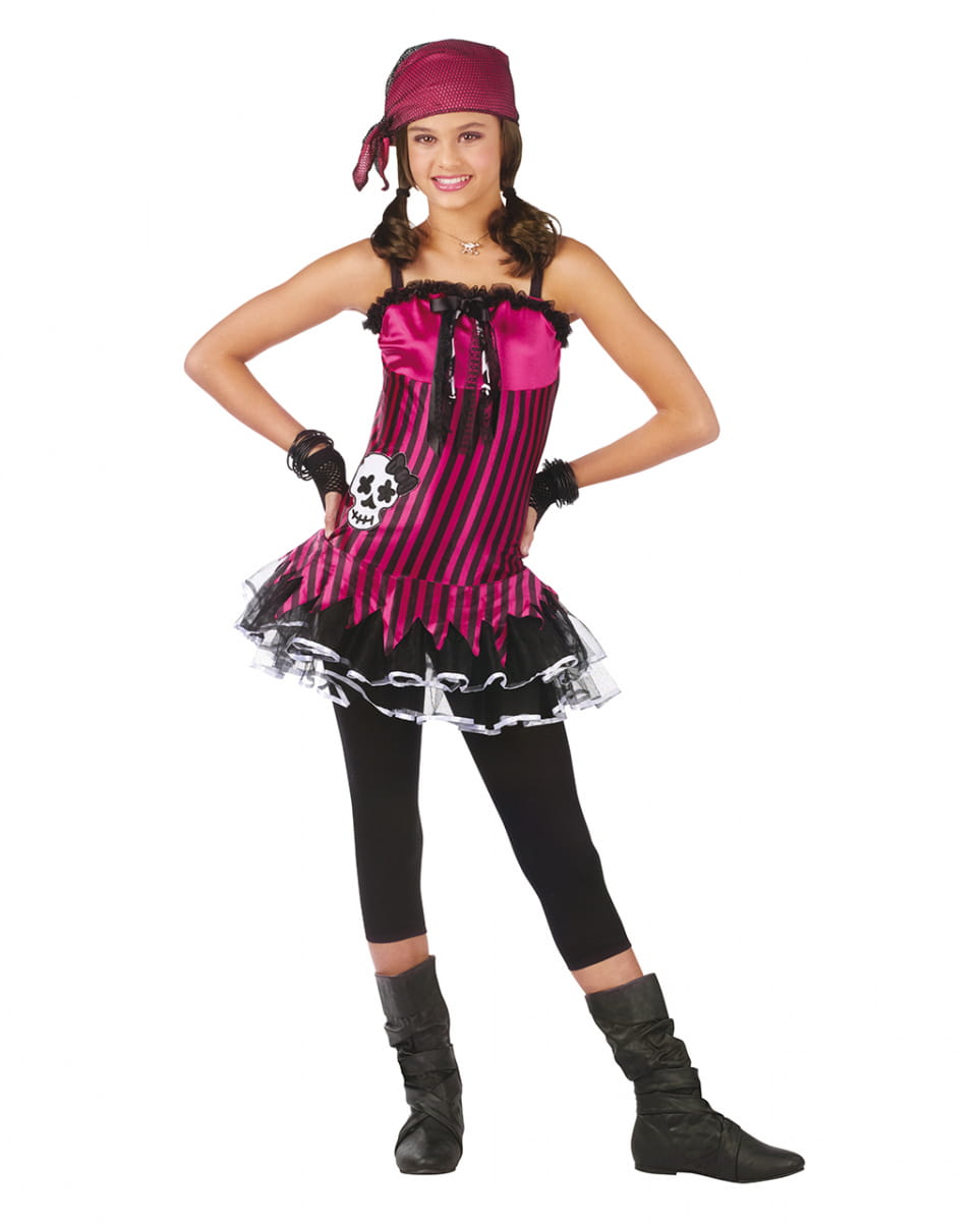 Rocking Skull Piratin Faschingskostüm Verkleide dich als tapfere Seeräuberin Freches Piratenkostüm für junge Mädchen, die es gerne mal als Seeräuberin versuchen wollen. Mit dem Rocking Skull Piratenkostüm bist du schnell als tapfere Piratin verkleidet und kannst auf der Schatzinsel nach Beute suchen. Das coole Design und die auffälligen Farben des Rocking Skull Kostüm machen aus dir schnell eine moderne Piratin.. Das Piratinnen Kostüm besteht aus dem Minikleid, den Netzhandstulpen, der Leggings sowie dem pinken Netzbandana. Das schwarz pink gestreifte Kleid ist reich mit Spitze und Rüschen besetzt sowie mit einem aufgenähten süßen Totenschädel verziert. Weitere Piraten Kostüme wie das Sonderposten Romantische Lolita Teenager Kostüm oder das Karibik Pirat Kostüm Teeny gibt es im Horror Shop. Produktinformationen: Lieferumfang: Kleid, Netzhandstulpen, Leggings, Netzbandana Farbe: pink, schwarz Material: 100% Polyester Maße Größe M: enstpricht ca. 134-140, Länge Kleid: 48 cm Maße Größe L: entspricht ca. 146-152, Länge Kleid: ca. 51 cm Maße Größe Teen: entspricht ca. 158-164, Länge Kleid: ca. 53 cm