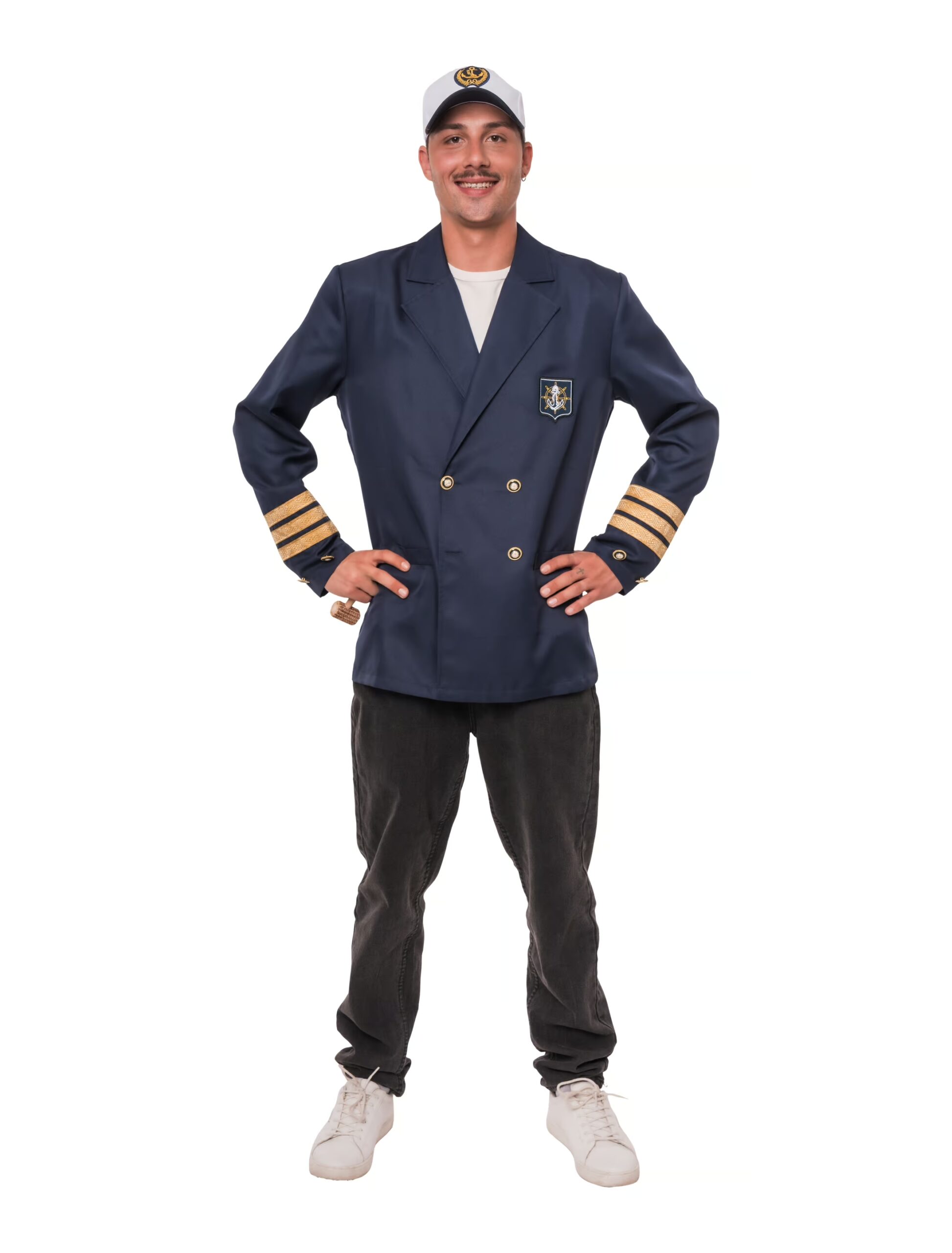 Mit unserem Kapitäns Sakko für Herren bringst du maritimen Charme und jede Menge Seemannsflair in jede Veranstaltung! Das Sakko ist ein echter Blickfang und verbindet klassisches Marine-Design mit schmuckvollen Details. Vorne lässt sich das Sakko bequem durch zwei dekorative Knöpfe schließen, die thematisch perfekt passen und mit einem Anker-Motiv verziert sind. Auf der linken Brust prangt ein Patch mit Anker und Steuerrad, der dem Sakko eine authentische Kapitäns-Note verleiht. Zwei angedeutete Taschen sorgen für den typischen Sakko-Look, während sich die dekorativen Knöpfe auch auf den Ärmeln wiederfinden und das maritime Design harmonisch abrunden. Ob beim Karneval, auf Motto-Partys oder bei maritimen Events – mit diesem Sakko bist bestens ausgestattet. Ein Muss für alle, die mit Humor, Stil und einer Portion Seefahrer-Spirit auftreten wollen!
