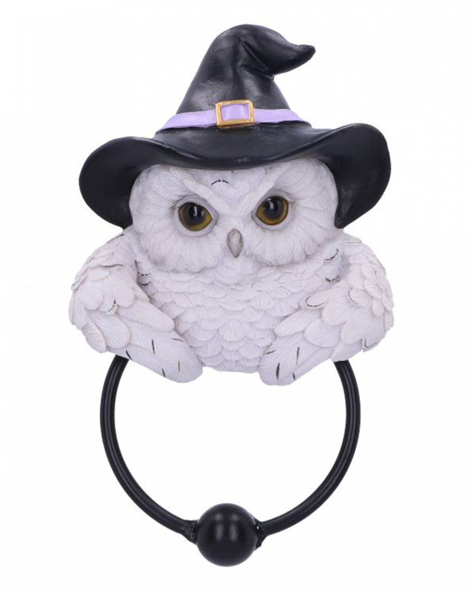 Weiße Schneeeule mit schwarzem Hexenhut Türklopfer 21 cm Magische Gothic Eule als Dekoration für die Haustüre Voller okkultem Wissen, mit einem spitzen schwarzen Zauberhut auf dem Kopf, heißt die Schneeeule deine Gäste willkommen. Mit ihren Flügeln umklammert sie einen Metallring, der so beschwert ist, dass ein lautes Klopfen ertönt. Gegossen aus feinstem Polyresin und sorgfältig von Hand bemalt, ist die Schneeeule mit Hexenhut die perfekte Ergänzung für jedes alternatives Zuhause oder die Sammlung von Eulenliebhabern. Lieferumfang: 1 x Weiße Schneeeule mit schwarzem Hexenhut Türklopfer 21 cm Farbe: Weiß, Schwarz, Violett, Gold Größe: ca. 21 cm Gewicht: 530 g Material: Polyresin (Kunststein), Metall Weiße Schneeeule mit Hexenhut als Türklopfer Wunderschöne Dekoration für den Eingangsbereich Türklopfer aus Metall, lässt sich bewegen Auf der Rückseite Schlüsselloch Aufhängung