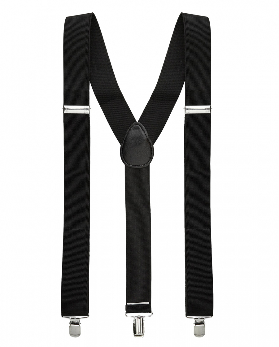 Schwarze Hosenträger Klassische Hosenträger für dein 20er Jahre Gangster Kostüm oder Cowboy Schwarze Hosenträger aus elastischem Stoff mit silbernen Clips. Klassische Hosenträger finden sich durch alle Zeitepochen bei der Herrenbekleidung, angefangen vom Wildwestfilmen, Gangsterfilmen bis hin zu Broadway Shows und deren Step-Tänzern. Heute sind Hosenträger wieder hochmodern und ein sehr beliebtes Modeaccessoire bei Männern und Frauen gleichermaßen. Kaum eines der heutigen Musikvideos, ganz gleich ob Rapper oder R&B Megastar der nicht mindestens einmal mit Hosenträger auftrat. Brad Pitt und Justin Timberlake waren die Vorreiter der Hosenträger-Fraktion. Die klassischen Hosenträger sind elastisch und dehnbar. Die Länge kann mithilfe der angebrachten silbernen Metallschnallen eingestellt werden. An den vorderen zwei Enden der Hosenträger und am Ende des hinteren Trägers befindet sich je ein silberner Metallclip zum Befestigen an der Hose. Der Knotenpunkt der drei Träger ist mit Kunstleder verstärkt. Die Breite des Hosenträgers ist ca. 3,5cm. Lieferumfang: 1 Paar Hosenträger Farbe: Schwarz Größe: Länge verstellbar, Breite ca. 3,5 cm Material: 100% Polyester Achtung, nicht für Kinder unter 36 Monaten geeignet, enthält Kleinteile, die verschluckt werden können