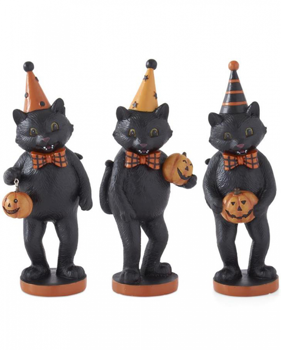 Schwarze Halloween Katze mit Kürbis, Fliege und Partyhütchen 23cm Grinsendes Halloween Kätzchen als hochwertige Dekoration Bestelle jetzt unsere bezaubernde schwarze Halloween Katze mit Kürbis, Fliege und Partyhütchen und lasse dein Zuhause in einem schaurig-schönen Licht erstrahlen. Mit ihrem freundlichen Gesichtsausdruck und dem niedlichen Hut wird sie alle Blicke auf sich ziehen und eine fröhliche Stimmung verbreiten. Unsere schwarze Halloween Katze mit Kürbis, Fliege und Partyhütchen hat eine Größe von ca. 23 x 9 x 7,5 cm und besteht aus hochwertigem Polyresin (Kunststein). Dieses Material sorgt dafür, dass die Dekofigur robust und langlebig ist. Jedes Detail wurde liebevoll von Hand bemalt, um einen realistischen Look zu erzielen. Bitte beachte, dass das Design aus logistischen Gründen nicht wählbar ist – lasse dich einfach überraschen! Die Figur wird einzeln verkauft und eignet sich perfekt als Tischdekoration oder als Blickfang im Regal. Lieferumfang: 1 x Schwarze Halloween Katze mit Kürbis, Fliege und Partyhütchen 23cm Inhalt: 1 Stück (Design aus logistischen Gründen nicht wählbar – lass´ dich überraschen!) Farbe: Schwarz, Orange, Gelb, Grün Größe: ca. 23 x 9 x 7,5 cm Material: Polyresin (Kunststein) Süß grinsende Halloween Katze Kätzchen mit Partyhut, Fliege und Halloween Kürbis Freundliche Halloween Deko für Kinder Aus feinstem Polyresin gegossen Liebevoll von Hand bemalt