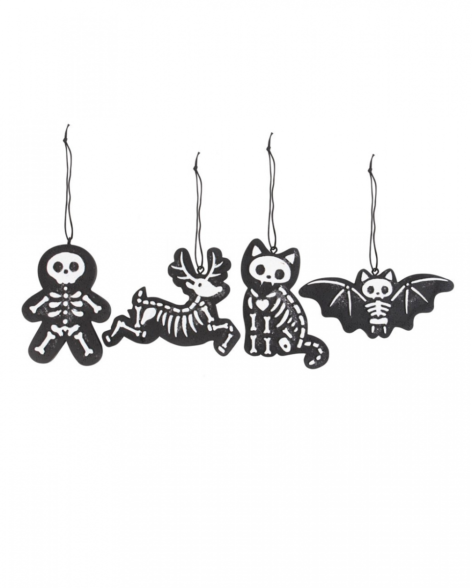 4 Stück Skelett-Keks Ornamente als Hängedekoration Lustige Lebkuchenmann Hängefiguren mit Skelett-Print Putzig und makaber zugleich – so präsentieren sich die 4 Stück Skelett-Keks Ornamente als Hängedekoration. Die süßen Figuren erinnern an Omas Keksausstecher und sorgen für düstere Nostalgie am Weihnachtsbaum. Das Set enthält Gingerdead Man, Skeleton Reindeer, Bony Bat und eine Creepy Cat. Die Figuren bestehen aus Kunststein und sind schwarz-weiß bemalt. Lieferumfang: 1 x 4 Stück Skelett-Keks Ornamente als Hängedekoration Inhalt: 4 Stück Farbe: Schwarz, Weiß Größe: jeweils ca. 10 × 4,5 × 1 cm Material: Polyresin (Kunststein) Vier Gothic Hängeornamente Lebkuchenmann, Skelett Rentier, Bony Bat, Creepy Cat Keks Style Ornamente Gothic Halloween Homeware Der Artikel ist ein Geschenkartikel. Nicht für Kinder unter 3 Jahren geeignet. Kann Kleinteile enthalten, die verschluckt werden können – Erstickungsgefahr. Von Feuer und offenen Flammen fernhalten.