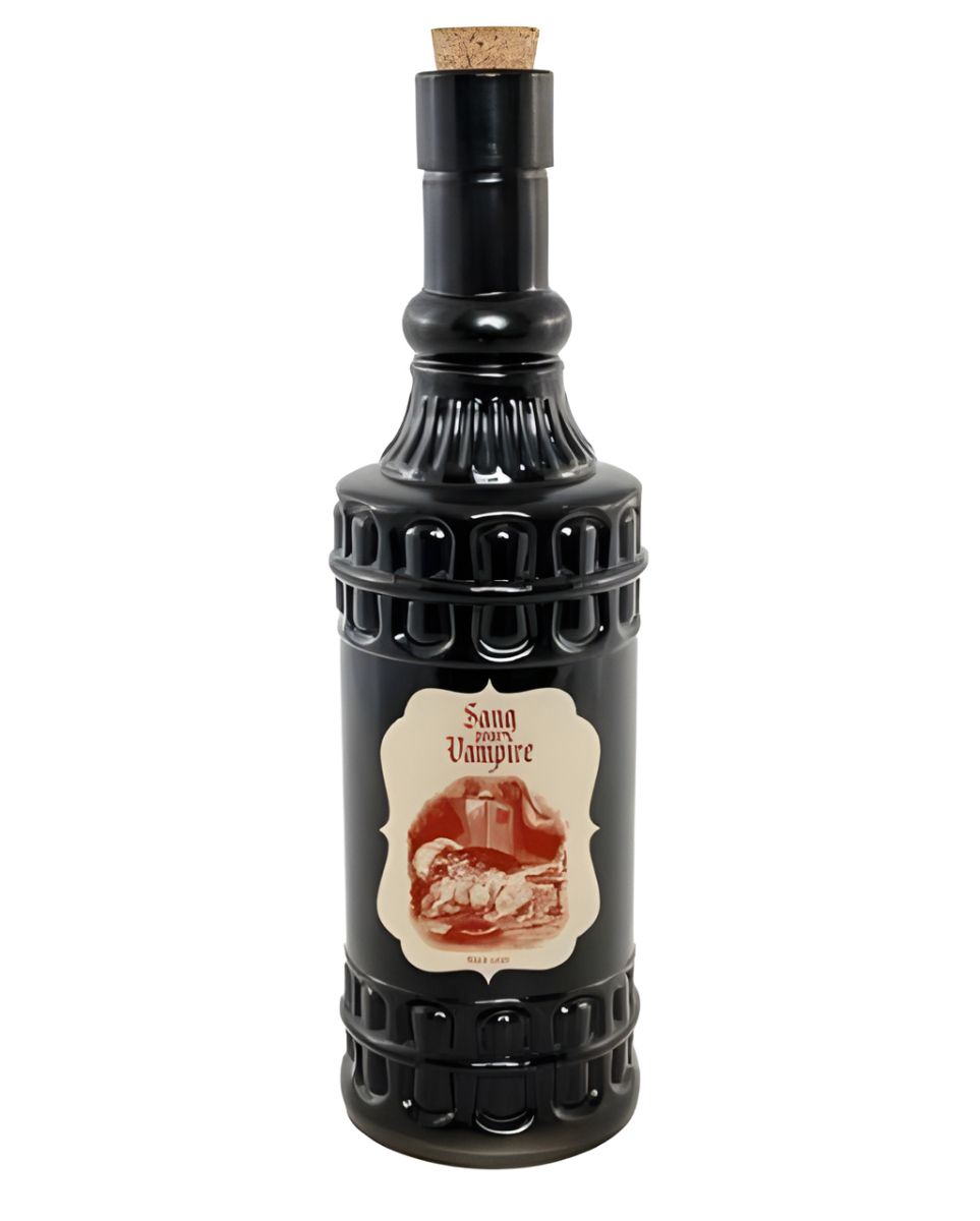 Schwarze Zaubertrankflasche mit Korken ",Vampir Blut", 23 cm Düstere Glasflasche mit Korken und Vintage Label als Tisch-Dekoration Sehnst du dich nach einem Flüstern der Ewigkeit? Diese edle, schwarze Zaubertrankflasche ",Vampir Blut", könnte das fehlende Puzzleteil für deine geheimnisvolle Sammlung sein. Ihr klassisches Design mit dem verführerischen Etikett weckt Assoziationen an vergangene Zeitalter voller Geheimnisse und dunkler Magie. Die schwarze Zaubertrankflasche mit Korken ",Vampir Blut", besteht aus getöntem Glas und ist mit einem naturbelassenen Korken verschlossen. Das auffällige Vintage-Label in Beige und Rot trägt die Inschrift „Sang from Vampir“ (Vampir Blut) und unterstreicht den antiken Look. Lieferumfang: 1 x Schwarze Zaubertrankflasche ",Vampir Blut", 23cm Farbe: Schwarz, Beige, Rot Größe: ca. 23 x 6,5 x 6,5 cm Gewicht: 341 g Material: Glas, Kork Schwarze Zaubertrank-Giftflasche mit Korken als Tischdekoration Dekorative Glasflasche mit schön gestaltetem Vintage Label Das extravagant gestaltete Label zeigt den Schriftzug ",Sang from Vampir", Fantastische Dekoration für Regal, Sideboard, Kaminsims und Fensterbrett Für alle, die Halloween und außergewöhnliche Gothic Kuriositäten lieben Nur zur Dekoration – nicht lebensmittelecht