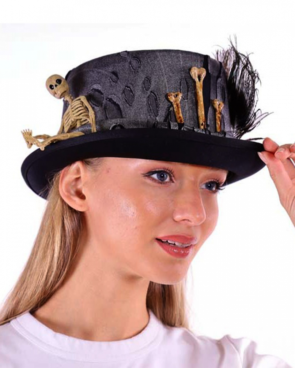 Schwarzer Voodoo Hut mit Skelett, Knochen und Feder als Kostümaccessoire Extravaganter Hut in Samtoptik mit Knochenapplikation als Halloween Kostümzubehör Hol dir jetzt unseren schwarzen Voodoo Hut Voodoo Hut mit Skelett, Knochen und Feder, wenn du als schaurige*r Voodoo Priester*n zur Halloween Party gehst. Der Kostümhut ist ein überzeugende Kopfbedeckung für unheimliche Auftritte. Der schwarze Voodoo Hut Voodoo Hut mit Skelett, Knochen und Feder, der dir einen gruseligen Auftritt verschafft, wurde mit Knochen Applikationen versehen. Der knochige Freund, der auf der Hutkrempe sitzt, sorgt für ein weiteres unheimliches Highlight. Lieferumfang: 1 x Schwarzer Voodoo Hut Voodoo Hut mit Skelett, Knochen und Feder Farbe: Schwarz, Braun Größe: Einheitsgröße für Erwachsene Material: 100% Polyester Ausgefallener Kostümhut mit Knochen Applikation Mit angenähter Pfauenfeder Perfekt für alle Voodoo Priester und Hexen Der Artikel ist ein Kostümzubehör für Erwachsene und kein Spielzeug. Nicht für Kinder unter 3 Jahren geeignet. Kann Kleinteile enthalten, die verschluckt werden können – Erstickungsgefahr. Von Feuer und offenen Flammen fernhalten.