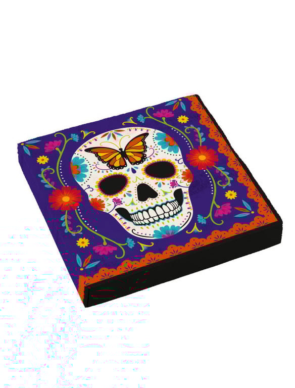 Feierst du das Leben so richtig – und vielleicht ein bisschen das Jenseits? Dann sind unsere Servietten Día de los Muertos genau das, was deine Party braucht! Dieses Set aus 16 farbenfrohen Servietten bringt mexikanischen Flair auf deinen Tisch, komplett mit kunstvollem Totenkopf Motive und leuchtenden Blumen. Ob für deine Halloween-Party, einen Mottoabend oder einfach, weil du auf coole Deko stehst: Diese Servietten machen deine Tischdeko lebendig und sorgen für den ultimativen *Wow*-Effekt. Also, schnapp dir unsere Servietten und lass die Toten tanzen. Viva la Fiesta!