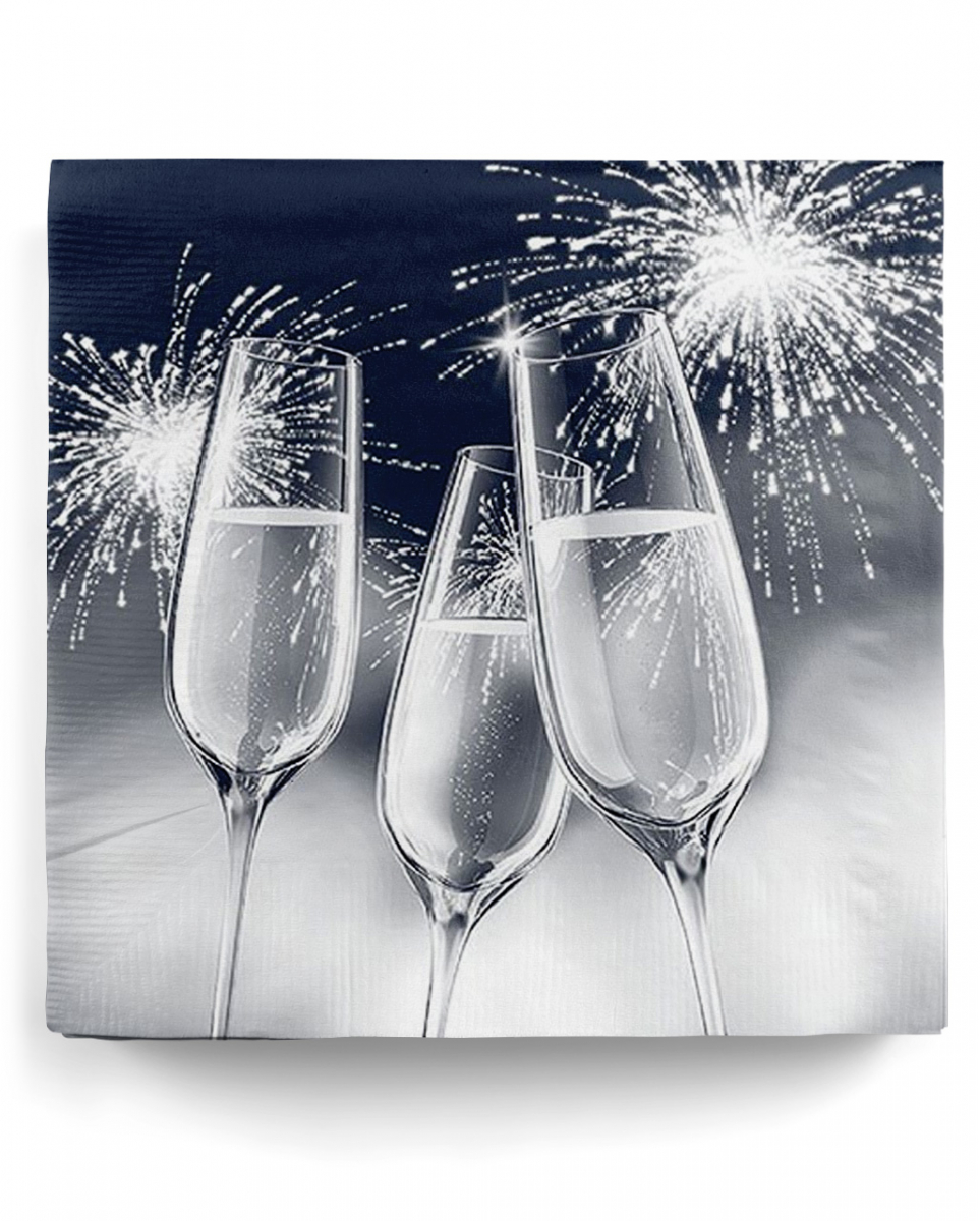 20 St. Einweg Servietten mit Sektgläsern Festliche Tischdeko mit Feuerwerk-Motiv Bei besonderen Festlichkeiten dürfen die richtigen Party-Servietten nicht fehlen. Als passende Tischdeko für Silvester, Jubiläum, Geburtstag und Gala-Party, sind die 20 St. Einweg Servietten mit Sektgläsern ideal geeignet. Durch den feierlichen Aufdruck und die dezenten Farben fügen sie sich optimal in den Rest deiner Tischdekoration mit ein. 20 St. Einweg Servietten mit Sektgläsern sind 3-lagige Party-Servietten mit Feuerwerk Motiv. Sie sind gefaltet ca. 16,5 x 16,5 cm groß. Du kannst sie aufwendig falten und auf die Teller deiner Gäste stellen. Ein eleganter Blickfang sind diese hübschen Papier Servietten mit Feuerwerk allemal. Lieferumfang: 1x 20 St. Einweg Servietten mit Sektgläsern Inhalt: 20 Stück Farbe: Blau/Grau/Weiß Größe: 33 x 33 cm (offen), 16,5 x 16,5 cm gefaltet Material: Zellstoff 3-lagige Servietten Der Artikel ist ein Dekorationsartikel für Erwachsene und kein Spielzeug. Nicht für Kinder unter 3 Jahren geeignet. Von Feuer und offenen Flammen fernhalten.