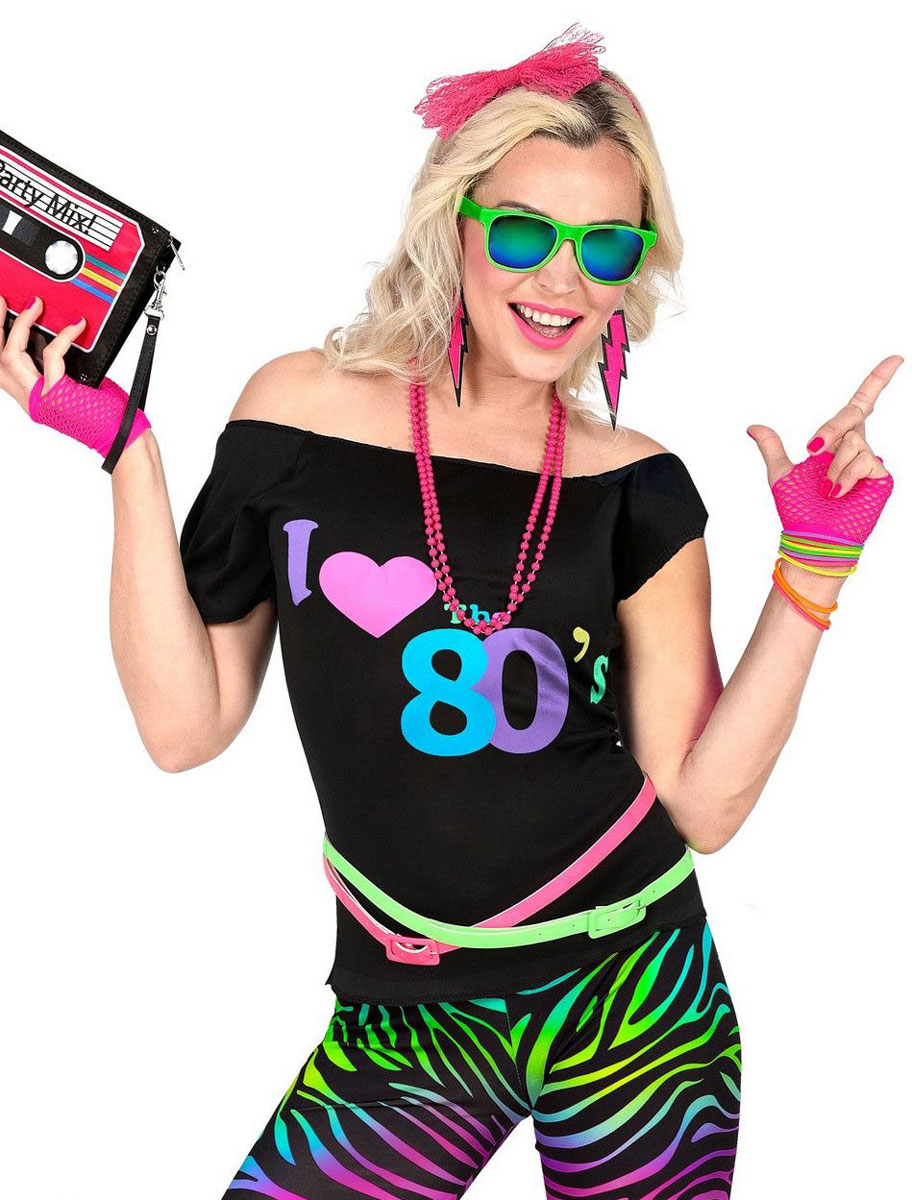 Shirt 80er Jahre Damen schwarz L/XL, ideal für Karneval & Fasching