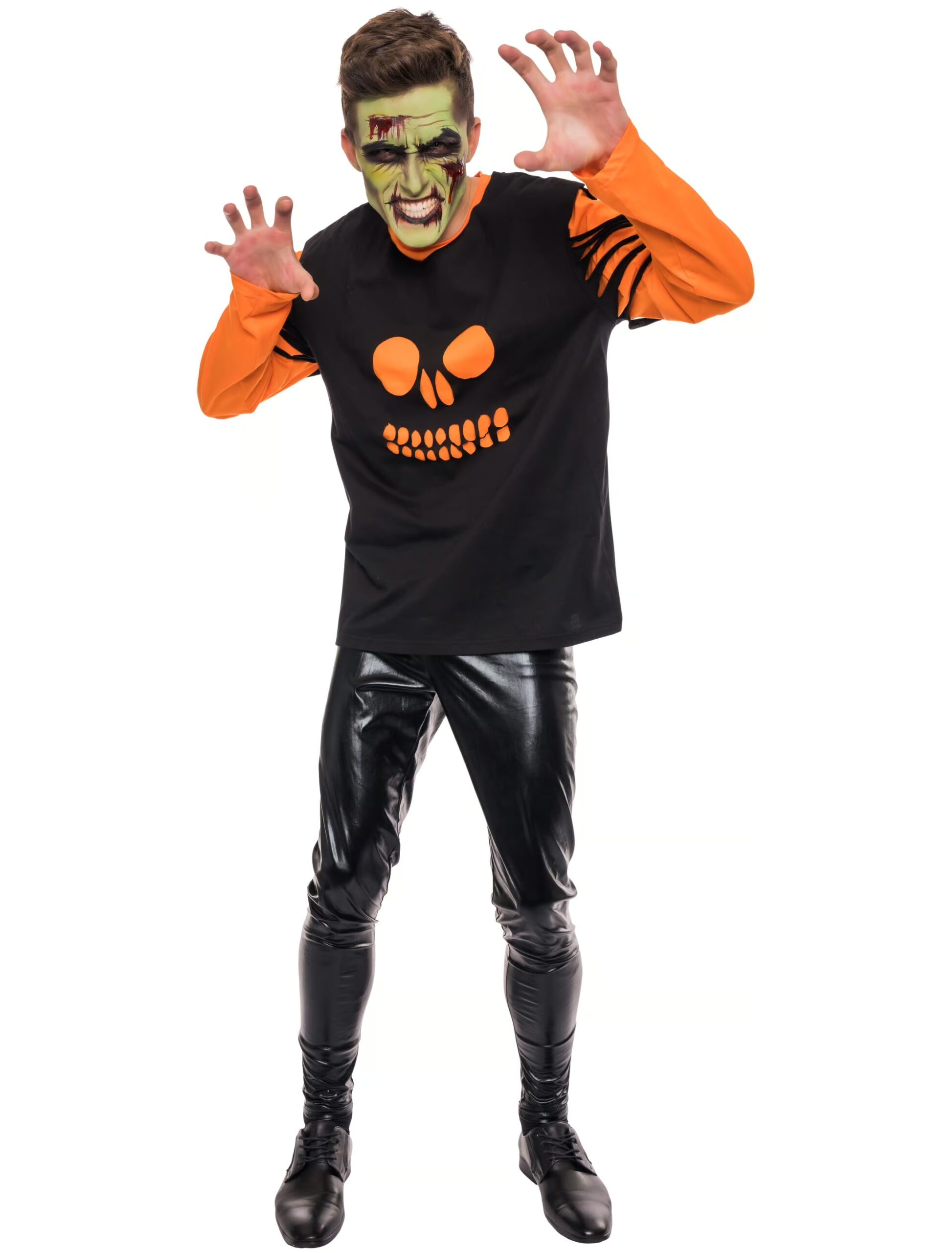 Shirt Langarm Kürbis schwarz/orange S/M, ideal für Karneval & Fasching