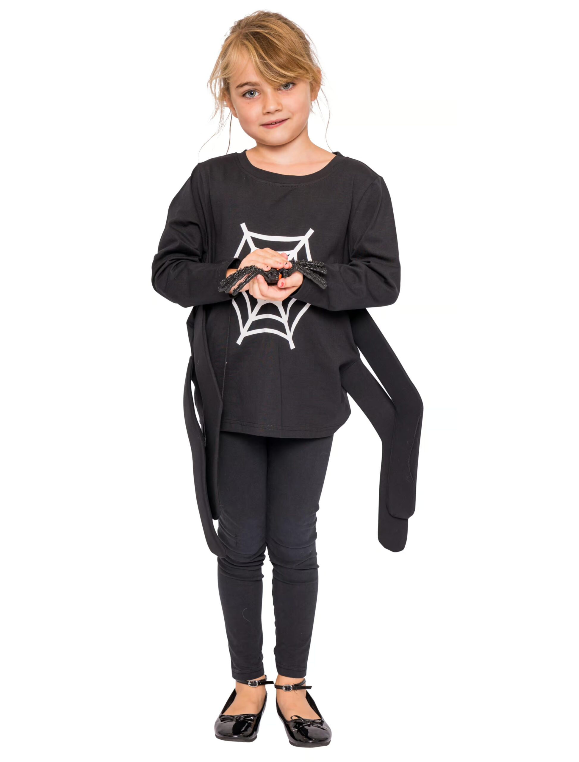 Die Kinder werden dieses Spinnen Shirt zu Halloween lieben. Es ist schwarz und hat zusätzlich Spinnenbeine an der Seite hängen. Das Shirt ist sehr hochwertig verarbeitet und besteht zu 95 Prozent aus Baumwolle und zu 5 Prozent aus Elasthan. Auf der nächsten Halloweenparty ist der Nachwuchs mit diesem Shirt der Star. Ein Spinnennetz ziert die Vorderseite des langarmigen, schwarzen Shirts. Mit etwas Schminke kommt man einer echten Spinne mit diesem Outfit sehr nahe.