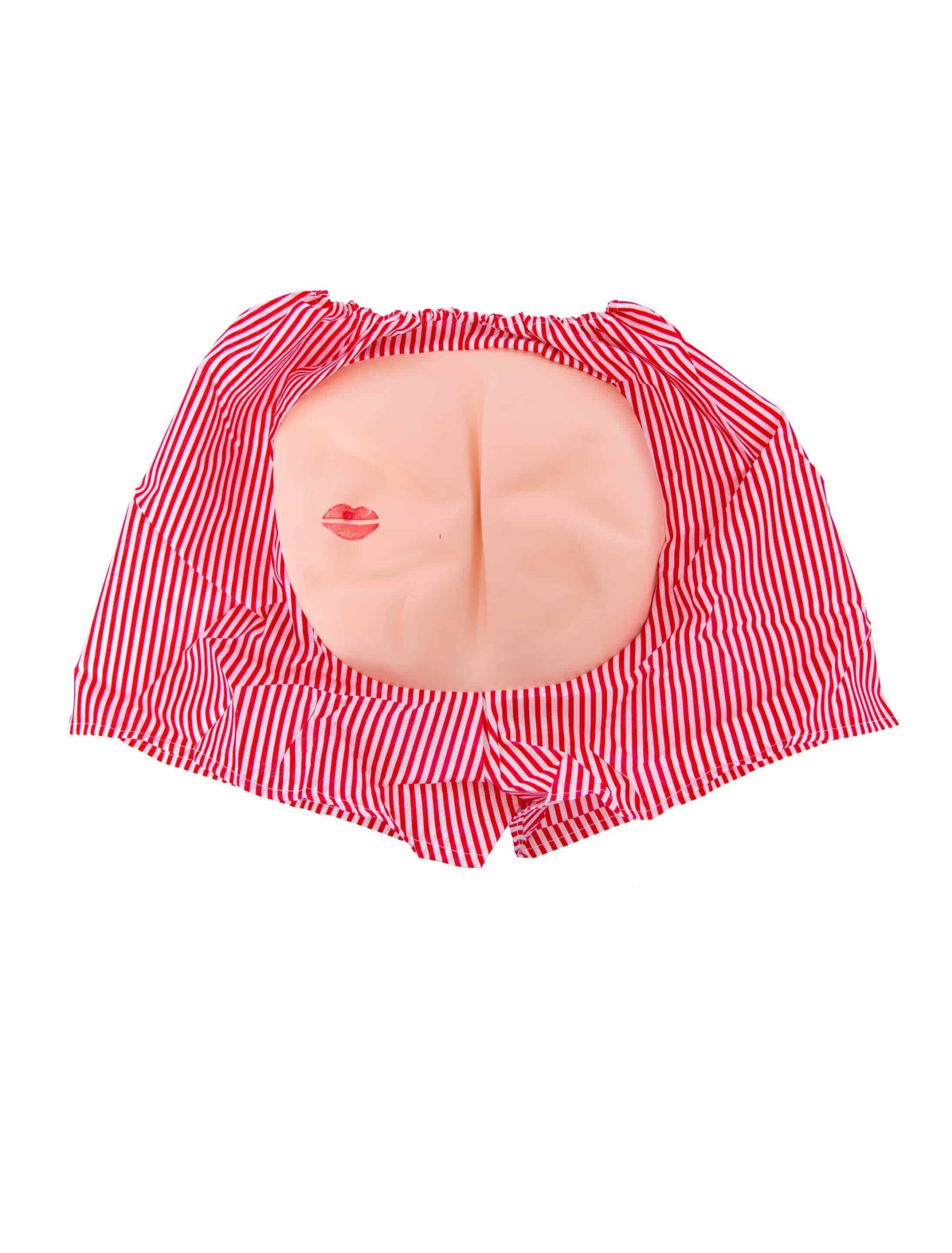 Wenn Du schon immer einmal Blank ziehen, oder einem nicht so geliebten Mitmenschen Dein nacktes Hinterteil zeigen wolltest, dann ist zum Karneval oder zum Fasching genau die richtige Gelegenheit, denn mit diesen einfallsreichen, rot- weiß gestreiften Shorts mit Hintern und Gummizug ist das kein Problem. Du hast die Lacher auf Deiner Seite und niemand wird Dir diesen Faschingsgag übel nehmen.