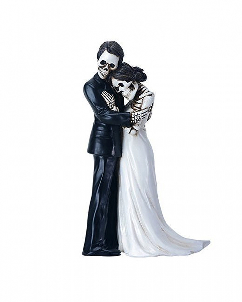 Skelett Brautpaar – Knöcherige Umarmung 16cm als Geschenkidee Dekoratives Gothic Skelett Hochzeitspaar als Tag der Toten Figur All you need is love. Das Skelett Brautpaar – Knöcherige Umarmung ist ideal, um es als wunderschöne Halloween Hochzeitsdeko einzusetzen. Oder an Brautpaare mit besonderem Sinn für Romantik zu verschenken. Die Skelette sind ein Zeichen ewiger Liebe. Das Skelett Brautpaar – Knöcherige Umarmung ist aus hochwertigem Polyresin (Kunststein) gegossen und von Hand bemalt worden. Die Skelettfiguren zeigen eine Braut im langen weißen Kleid, die liebevoll von ihrem untoten Bräutigam im umarmt wird. Lieferumfang: 1 x Skelett Brautpaar – Knöcherige Umarmung 16cm Farbe: Schwarz, Weiß Größe: ca. 16 cm Material: Polyresin (Kunststein) Skelett Paar als romantisches Hochzeitspärchen Aus hochwertigem Polyresin gegossen Liebevoll von Hand bemalt Der Artikel ist ein Deko Artikel und kein Spielzeug. Nicht für Kinder unter 3 Jahren geeignet. Kann Kleinteile enthalten, die verschluckt werden können – Erstickungsgefahr. Von Feuer und offenen Flammen fernhalten.