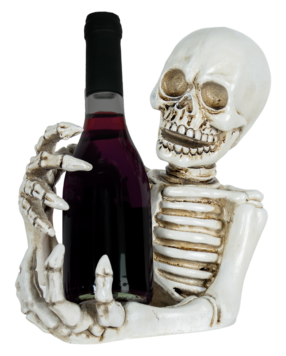 Skelett Figur als Flaschenhalter 20cm Grinsende Skelett Figur als Deko für Hausbar und das Halloween Buffet Stell dir vor, wie ein grinsendes Skelett deine Lieblingsflasche umklammert – ein Hauch von Tod bringt Leben in deine Party. Dieser unheimliche Flaschenhalter ist nicht nur eine Dekoration, sondern entfacht Gespräche und verstärkt die Atmosphäre deiner düsteren Feierlichkeiten. Der handbemalte Flaschenhalter aus Polyresin zeigt ein detailreich gearbeitetes Skelett, das perfekt für kleine Softdrink- oder kleine Weinflaschen geeignet ist. Der maximale Flaschendurchmesser beträgt ca. 22 cm. Ob als Gothic Homeware oder als gruselige Tischdeko für deine Halloween-Party – der Skelett-Flaschenhalter passt ideal auf Sideboards, Buffetflächen oder in deine düster dekorierte Hausbar. Lieferumfang: 1 x Skelett Figur als Flaschenhalter 20cm Farbe: Beige, Braun Größe: ca. 20 x 20 x 15 cm Material: Polyresin (Kunststein) Das grinsende Skelett passt perfekt für kleine Softdrink- und Weinflaschen Maximaler Flaschenumfang ca. 22cm Gegossen aus hochwertigem Polyresin Hand bemalter Grim Reaper Flasche nicht im Lieferumfang enthalten