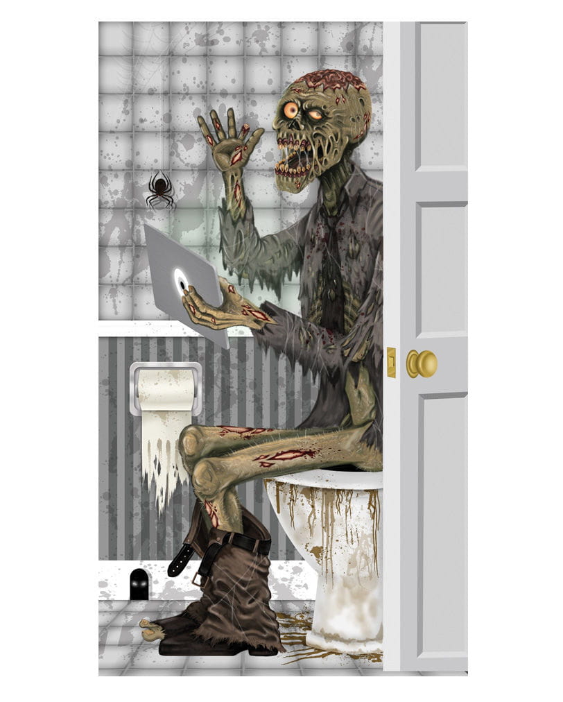 Leiche im Klo Türfolie Gruselige Zombie Dekoration für die Toilettentüre Schmücke für deine nächste Halloween Feier und Mottoparty auch deine Toilettentüre. Wenn du die Leiche im Klo Türfolie aufhängst, wissen deine Gäste sofort, wo sie die nächste Toilette finden und einen grandiosen Hingucker bietet diese witzige Türdekoration allemal. Die Leiche im Klo Türfolie ist circa 76 auf 152 cm groß. Die abgebildete Klo-Szene zeigt einen winkenden Untoten, der auf einer Kloschüssel sitzt und ein Tablet in der Hand hält. Der gezeigte Raum weist erhebliche hygienische Mängel auf, die auf die Benutzung durch lebendige Leichen zurückzuführen ist. Lieferumfang: 1 x Leiche im Klo Türfolie Inhalt: 1 x Türfolie Farbe: grau, braun, weiß Größe: ca. 76,2 x 152,4 cm Material: Kunststoff Halloween Dekoration für die Toilettentüre Achtung: Der Artikel ist kein Spielzeug. Nicht für Kinder unter 3 Jahren geeignet. Kann Kleinteile enthalten, die verschluckt werden können – Erstickungsgefahr. Von Feuer und offenen Flammen fernhalten.
