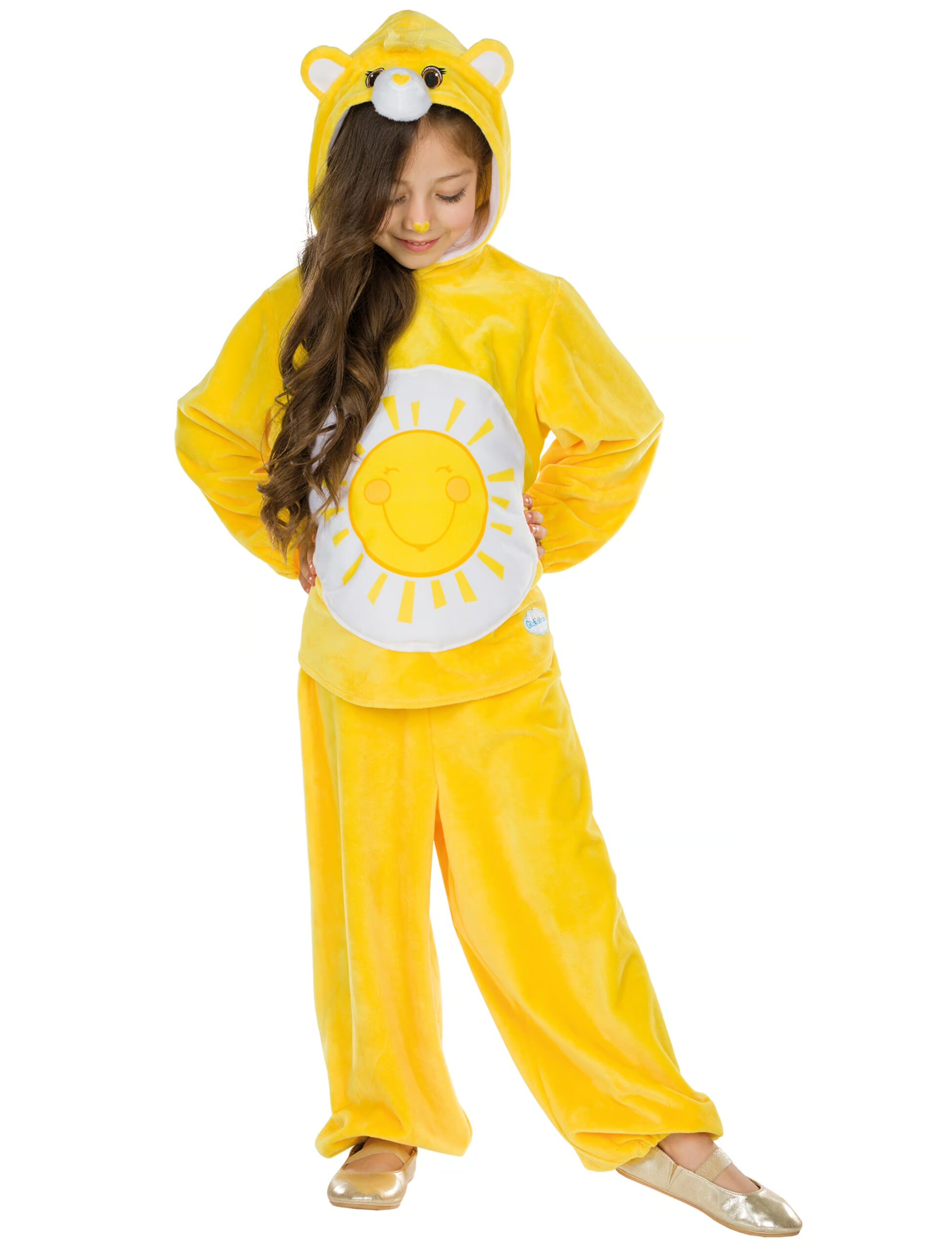 Für Wärme und ein angenehm sonniges Wetter sorgst Du mit unserem tollen Sonnenscheinbärchi Kostüm in Gelb. Das zweiteilige Bär Kostüm für Mädchen besteht aus einem Oberteil und einer Hose, die sich prima für eine Glücksbärchis Mottoparty eignen. Aber auch als Kostüm für einen Kindergeburtstag ist die Verkleidung hervorragend geeignet. Bei dem Outfit handelt es sich um ein originales Glücksbärchis Merchandise Produkt, das Du in mehreren Größen bei uns erwerben kannst. Während die Kapuze von einem niedlichen Sonnenscheinbärchi Gesicht geschmückt wird, ziert eine fröhliche Sonne den Frontbereich dieses sonnigen Oberteils für Mädchen. Bei dem Kostüm handelt es sich um offiziellen Disneys Gummibärenbande Merchandise.