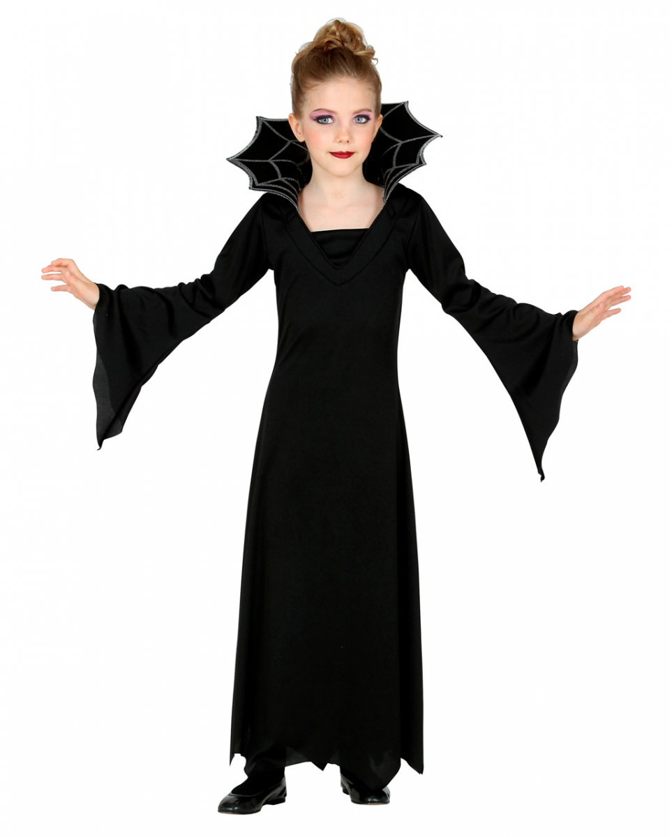 Spinnenprinzessin Spiderella Kinderkostüm für Halloween und Fasching Langes elegantes Kostümkleid mit Trompetenärmeln und Stehkragen Das Spinnenprinzessin Spiderella Kinderkostüm ist ideal für kleine Hexen. Niemand kann dem düster-eleganten Look der Spinnenprinzessin widerstehen, geschweige denn, ihr widersprechen, wenn sie an Halloween oder Fasching die Süßigkeiten einfordert. Unser Spinnenprinzessin Spiderella Kinderkostüm ist ein nachtschwarzes Kostümkleid, das mit aufwendigen Details, wie dem Stehkragen mit Spinnennetz Muster und den weiten Trompetenärmeln begeistert. Es ist etwa knöchellang. Lieferumfang: 1 x Spiderella Prinzessin Kinderkostüm Farbe: Schwarz, Silber Größe: S, M, L Material: 100% Polyester Elegantes Halloween Kostüm für Mädchen Trompetenärmel und Stehkragen mit Spinnweben Muster Vielseitig einsetzbar für Halloween und Fasching Größe S 128 / 5-7 Jahre M 140 / 8-10 Jahre L 158 / 11-13 Jahre