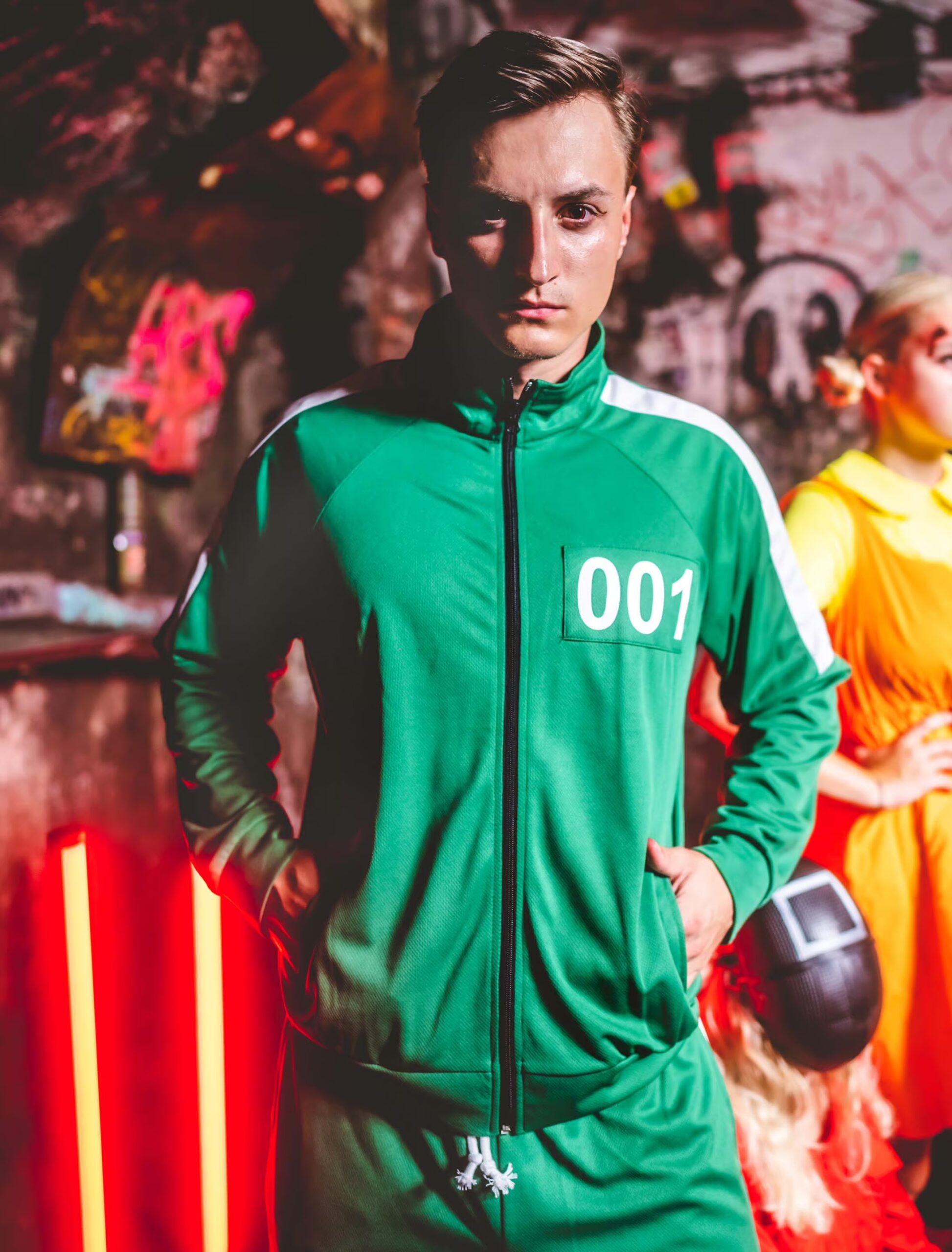 Mit unserem Spieleranzug 001 zeigst Du allen, dass Du nicht nur dabei bist – Du bist die Nummer 1! Dieser zweiteilige Anzug, bestehend aus einer Jacke und einer Hose, bringt Dich direkt ins Zentrum der Action und lässt Dich aussehen, als hättest Du gerade die härtesten Prüfungen des Lebens bestanden. Ob als cleveres Kostüm für die nächste Mottoparty oder als lässiger Hingucker für Deine Freunde – in diesem Outfit bist Du immer auf der Gewinnerseite. Schließlich gibt es nur eine Nummer 1 – und das bist Du!