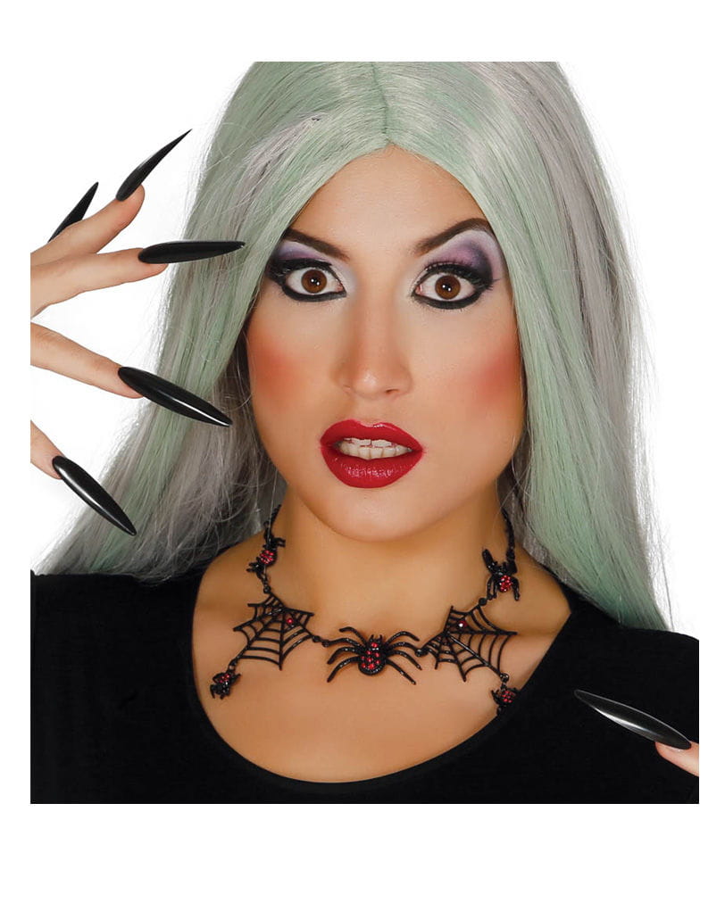 Halskette mit Spinnen und Spinnweben Extravagante Halskette Für Fasching und Halloween Die elegante Spinnenhalskette mit Spinnweben setzt das Dekolleté jeder Vampirin und Hexe gekonnt in Szene und macht dein Outfit spektakulär. Die Halskette mit Spinnen und Spinnweben ist aus Kunststoff und besteht aus einer großen Spinne, zwei kleinen Spinnen und zwei Spinnennetze mit daranhängenden kleinen Spinnen. Die Spinnen und Spinnennetze ist mit mehreren rot glitzernden Schmucksteinen verziert. Diese Kette ist ein wahrer Eyecatcher. Lieferumfang: 1 x Halskette mit Spinnen und Spinnweben Farbe: schwarz/rot Größe: Länge: ca, 48 cm Material: 100% Kunststoff Der letzte Schliff für dein Halloween- und Gothikkostüm. Achtung: Der Artikel ist ein Kostümzubehör für Erwachsene und kein Spielzeug. Nicht für Kinder unter 3 Jahren geeignet. Kann Kleinteile enthalten, die verschluckt werden können – Erstickungsgefahr. Von Feuer und offenen Flammen fernhalten.