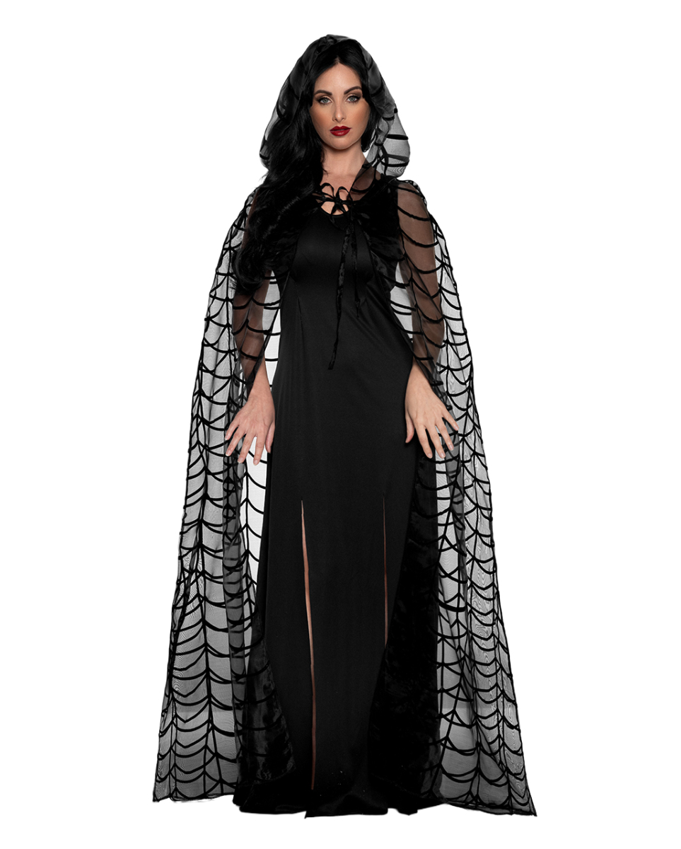 Spinnweben Umhang für Halloween Schwarz transparentes Kapuzen Cape mit Spinnennetz Verzierung Stell dir vor, wie du als geheimnisvolle Gestalt in der Halloween-Nacht schwebst, verhüllt im Spinnweben Umhang. Die zarten Netze auf deinem Gewand glitzern im Mondlicht und ziehen bewundernde Blicke magisch an. Egal ob als düstere Vampirfürstin oder mächtige Hexenmeisterin – dieser Mantel umgibt dich mit einer Aura voller Geheimnisse und Distanz. Der Spinnweben Umhang für Halloween ist in einer praktischen Einheitsgröße gestaltet, die den meisten Erwachsenen passt und sich leicht über andere Kostüme ziehen lässt. Eine elegante Kapuze verstärkt den mystischen Look. Geschlossen wird der Umhang am Hals mit einer stilvollen Schleife, die nicht nur sicher hält, sondern auch einen charmanten Akzent setzt. Lieferumfang: 1 x Spinnweben Umhang für Halloween Farbe: Schwarz Größe: One Size Material: 100% Polyester Eindrucksvoller Halloween Umhang mit Spinnweben Mit extravaganter Kapuze Wird am Hals mit einer Schleife geschlossen Perfekt für Vampir und Hexen Kostüme Kleid nicht enthalten