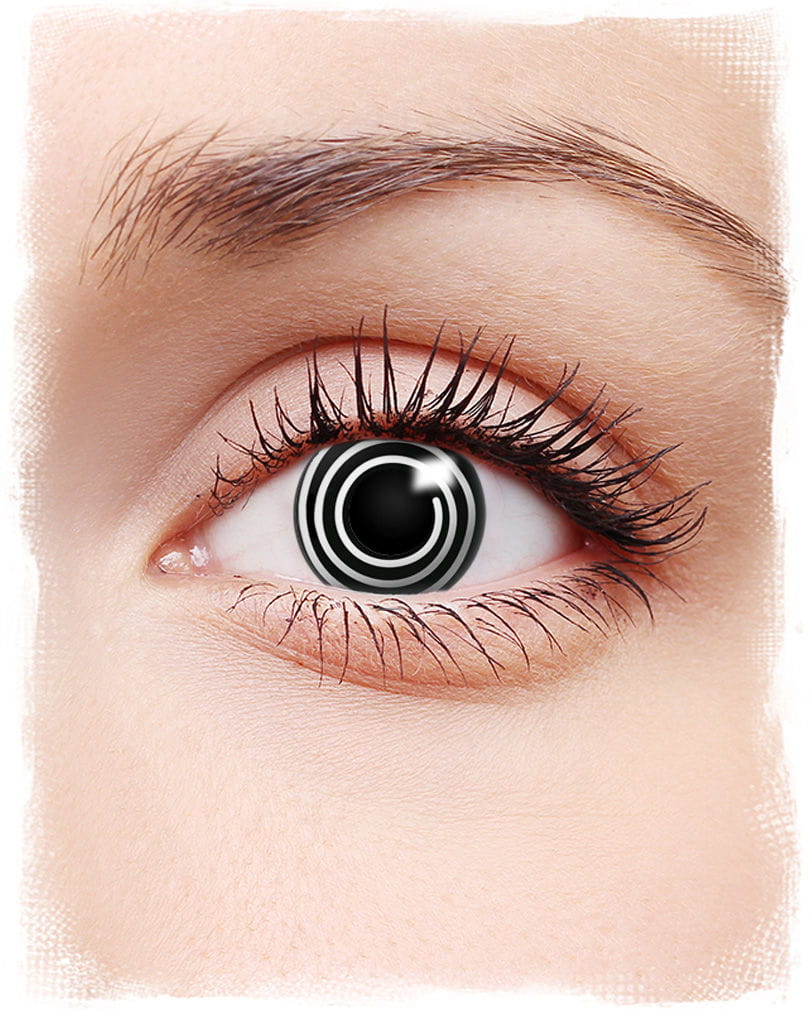 Spiral Motiv-Kontaktlinsen Mit farbigen Kontaktlinsen sind coole Augenblicke möglichDie Spiral Motiv-Kontaktlinsen Black und White sind reine Partylinsen und besitzt keine Sehstärke. Farbige Kontaktlinsen wie die Spiral Kontaktlinse Black und White sind eine tolle und einfache Möglichkeit im Mittelpunkt jedes Events zu stehen. Die Spiral Motiv-Kontaktlinsen Black White sind bis zu 12 Monate anwendbar (Jahreskontaktlinsen) bei entsprechender Pflege. Diese sind für helle und dunkle Augen geeignet und haben eine sehr starke Deckkraft. Sehr gute Qualität und sehr guter Tragekomfort. Hergestellt im Sandwich-Verfahren. Dadurch gelangen garantiert keine Farbpartikel ins Auge. Nicht im Straßenverkehr geeignet! Zusatzinformationen ( Spiral Motiv- Kontaktlinsen Black und White): Inhalt: 2 Stück farbige Spiral Kontaktlinsen im Fläschchen Art: weiche Kontaktlinsen Material: 58% Polyhema, 42% Wassergehalt Radius (BC): 8.60 mm Durchmesser (DIA): 14.5 mm Ohne Dioptrin ( ohne Sehstärke ) Bis zu 12 Monate anwendbar, bei entsprechender Pflege KONTAKTLINSEN Pflegehinweise für Ihre Kontaktlinsen Sie haben sich mit den weichen Effektkontaktlinsen für ein Qualitätsprodukt entschieden, das nach internationalen Standards gefertigt wurde. Um sicherzustellen, dass Sie Ihre Kontaktlinsen sicher und bequem bei bester Sicht tragen können, sollten Sie die folgenden Hinweise sorgfältig lesen und zu jeder Zeit beachten. Bitte bewahren Sie diese Hinweise auf, um bei eventuellen Nachfragen später noch einmal nachschlagen zu können. Falls Sie zum ersten Mal Kontaktlinsen verwenden, sollten Sie die Tragezeit der Linsen langsam steigern. Tragen Sie die Kontaktlinsen am ersten Tag nicht länger als 4 Stunden und verlängern Sie die Tragezeit täglich um 2 Stunden. Länger als 8 Stunden am Stück sollten die Kontaktlinsen aber niemals getragen werden. Die Kontaktlinsen sind des weiteren nicht für Personen unter 18 Jahren geeignet. Anwendungshinweise Berühren Sie Ihre Linsen nur mit sauberen, trockenen Händen. Achten Sie beim ersten Öffnen der Verpackung darauf, dass die Linse intakt und komplett von Flüssigkeit umgeben ist. Benutzen Sie die Motivlinse nicht, wenn sie ausgetrocknet oder beschädigt ist. Die Linsen sind für einen Tragezeitraum von zwölf Monaten konzipiert und sollten danach dementsprechend entsorgt werden. Die Kontaktlinsen sind zwingend vor dem ersten Gebrauch aus der Originalverpackung heraus zu nehmen und für mindestens 4 Stunden in frische Kontaktlinsenlösung zu legen. Erst dann ist die Kontaktlinse nach Anleitung einsetzbar. Bitte beachten Sie genau weitere Pflegehinweise. Einsetzen 1. Nehmen Sie eine Motivlinse aus der Verpackung. 2. Legen Sie die Linse auf den rechten Zeigefinger und stellen Sie auf der Fingerkuppe fest, ob die Linse richtig herum liegt. 3. Halten Sie Ihr oberes Augenlid mit Ihrem linken Zeige- und Mittelfinger weit geöffnet, während Sie das untere Lid mit Ihrem rechten Mittelfinger geöffnet halten. 4. Platzieren Sie die Linse auf Ihrem Auge. 5. Wiederholen Sie die Schritte 1.–4. mit der anderen Linse. Herausnehmen Schauen Sie nach oben und halten Sie Ihr unteres Augenlid nach unten. Drücken Sie die Linse mit Daumen und einem Finger leicht zusammen und heben Sie sie dann heraus. Reinigung und Desinfektion Befolgen Sie immer die Anweisungen auf der Flasche Ihrer Kontaktlinsenlösung. Sollten Ihre Kontaktlinsen einmal austrocknen, sind sie sehr empfindlich und müssen dementsprechend mit äußerster Vorsicht gehandhabt werden. Legen Sie die Linsen dann für mindestens 4 Stunden in frische Kontaktlinsenlösung. Reinigen und desinfizieren Sie Ihre Linsen dann erneut und überprüfen Sie sie sorgfältig auf eventuelle Schäden. Wenn Sie Zweifel an der Unversehrtheit der Linsen haben, suchen Sie Ihren Optiker auf, bevor Sie Ihre Kontaktlinsen wieder tragen. Hinweis: Wir empfehlen, einen Optiker oder Augenarzt aufzusuchen, der Ihnen die sachgemäße Verwendung von Kontaktlinsen genau erklärt und mit Ihnen üben kann. Vorsichtsmaßnahmen Denken Sie stets daran, dass die Gesundheit Ihrer Augen entscheidend für Ihr gutes Sehvermögen ist. Gehen Sie kein Risiko durch Nachlässigkeit oder Eitelkeit ein und halten Sie sich deshalb an die nachfolgenden Tragehinweise. 1. Wir empfehlen Ihnen die Kontaktlinsen monatlich zu erneuern und täglich zu pflegen. 2. Bei Fragen zur korrekten Handhabung von Kontaktlinsen empfehlen wir Ihnen die Konsultation Ihres Optikers. 3. Benutzen Sie niemals bereits benutzte Kontaktlinsenlösung noch einmal. 4. Befolgen Sie die Anleitung Ihrer Kontaktlinsenlösung bezüglich Lagerzeiten und Behandlungsweise. 5. Entfernen Sie die Spiral Kontaktlinsen und suchen Sie einen Optiker auf, wenn Ihre Augen schmerzen, sich röten, oder brennen, wenn Ihre Augen tränen oder Ihre Sicht durch Lichtreflexe oder Farbfelder gestört ist. 6. Entfernen Sie die Linsen, bevor Sie zu Bett gehen oder sich länger hinlegen. 7. Halten Sie Ihre Fingernägel kurz, weil lange Nägel die Linsen beschädigen können. 8. Tragen Sie die Spiral Kontaktlinsen nicht, wenn Sie in Behandlung bei einem Augenarzt sind bzw. konsultieren Sie Ihren Arzt vorher. 9. Benutzen Sie keinen Speichel, um Ihre Linsen anzufeuchten oder zu reinigen. 10. Tragen Sie Ihre Kontaktlinsen nicht, wenn Sie Augenmedikamente oder Augentropfen verwenden. 11. Tragen Sie niemals Linsen, wenn diese beschädigt oder verkratzt sind oder wenn sie Ablagerungen aufweisen, die sich nicht entfernen lassen. 12. Tragen Sie Augenmake-up nach dem Einsetzen der Spiral Kontaktlinsen auf und entfernen Sie es nach dem Herausnehmen der Linsen. Verwenden Sie möglichst faserfreie, wasserlösliche Augenkosmetika und ölfreie Produkte. 13. Benutzen Sie keine scharfen Haushaltsreiniger, während Sie die Spiral Kontaktlinsen tragen. 14. Verwenden Sie niemals Haushaltsprodukte (wie z.B. Desinfektionsmittel) oder Leitungswasser zur Reinigung Ihrer Kontaktlinsen oder Aufbewahrungsdosen. Sie können Ihren Augen ernsthaft schaden. 