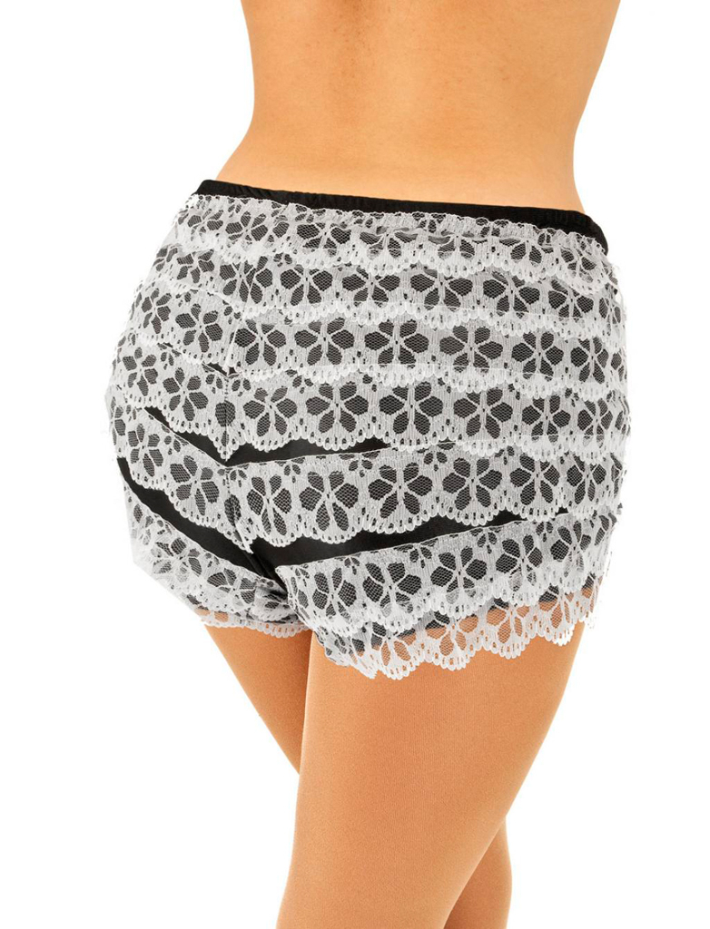 Möchtest Du dieses Jahr als Tanzmariechen Deinen großen Auftritt haben? Dann hast Du mit der Spitzenhose schwarz/weiß die ideale Ergänzung für Dein perfektes Kostüm gefunden. Aber auch für viele weitere, kreative Kostümideen ist dieses “lebenswichtige” Accessoire für untendrunter optimal geeignet: Jede Verkleidung mit Rock, in der Du ein wenig auf Verführung abzielst, wird mit diesem Detail um einen Reiz reicher. Mit der schwarz-weißen Spitzenhose bist Du dank schwarzem, eng anliegendem Höschen und raffinierter aufgenähter Spitze liebreizend und chic unterwegs.