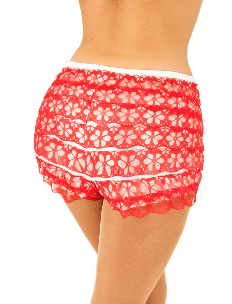 Ob als Tanzmariechen oder im schicken Gardekostüm, die Spitzenhose weiß/rot ist ein absolutes Muss für jeden begeisterten Karnevalsgänger. Die weiß-rote Spitzenhose liegt eng an und besticht durch ihre aufgenähte rote Spitze. Sie komplettiert Dein Kostüm in jedem Fall um einen Hingucker, sobald Du das Tanzbein schwingst. Damit bist Du der Mittelpunkt der Party und wirst allen definitiv in Erinnerung bleiben. Egal, ob Du nun die große Tänzerin bist oder etwas tollpatschig abdankt, dieses Höschen macht deine Bewegungen in jedem Fall sexy.