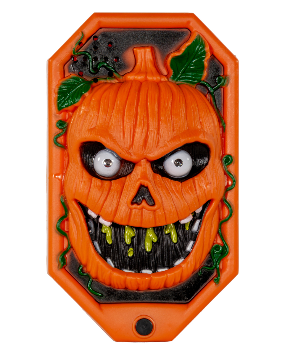 Halloween Kürbis Türklingel mit Licht und Sound als Effekt Spooky Türglocke, die deinen Gästen bereits an der Haustür einen Schrecken einjagt Stell dir vor, wie das Herz deines Freundes einen Satz macht, als er nichtsahnend den Klingelknopf betätigt und plötzlich eine gruselige Spinne aus dem Mund eines kichernden Kürbisses springt. Rotes Glimmen aus seinen Augen und ein schauriges Lachen begleiten diesen Schreckmoment – die perfekte Empfangszeremonie für alle Halloween-Begeisterten. Die Halloween Kürbis Türklingel mit Licht und Sound als Effekt ist aus Kunststoff gefertigt und misst 19 x 11 x 2 cm. Dieses furchteinflößende Gerät benötigt 3 x AA-Batterien (nicht im Lieferumfang enthalten), um seine erschreckenden Licht- und Soundeffekte zu aktivieren. Lieferumfang: 1 x Halloween Kürbis Türklingel mit Licht und Sound als Effekt Farbe: Orange, Grün, Schwarz Größe: 19 x 11 x 2 cm Batterien: Es werden 3 x AA-Batterien benötigt, nicht inkl. Material: Kunststoff Halloween Türklingel mit Shockeffekt Wird der Klingelknopf gedrückt, ertönt ein Türglockenton Das absolute Highlight ist eine Spinne, die aus dem Mund des Kürbisses heraus schnellt Der Schocker für deine Halloween Gäste! Der Kürbis lacht und spricht unheimlich in Englisch, während seine Augen rot leuchten Auf der Rückseite der Türglocke befinden sich Löcher zum Aufhängen Geniale Halloween Animatronic für deine Halloween Party