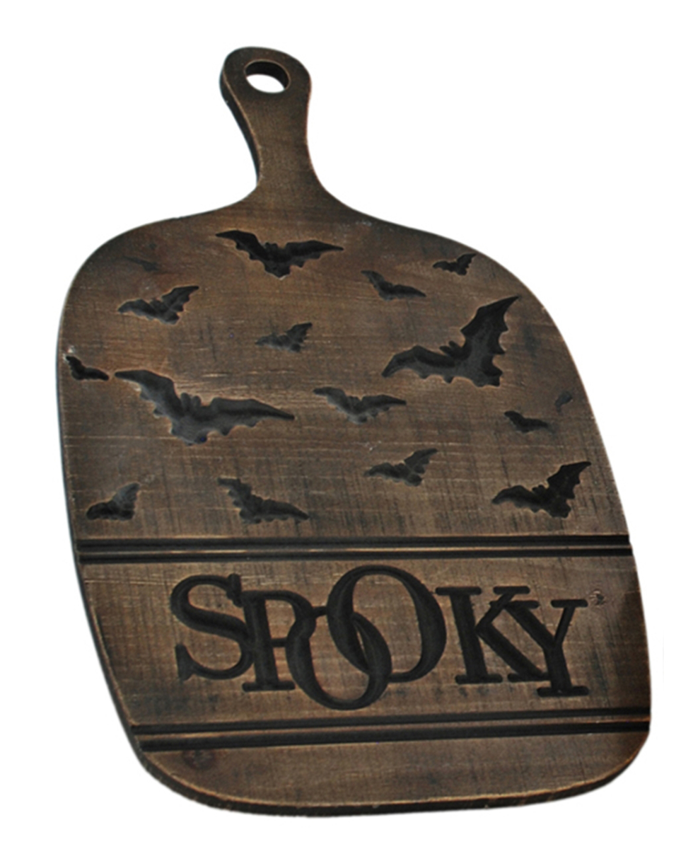 Spooky Vintage Schneidebrettchen als Küchenutensil 39cm Unheimliches Holzbrettchen mit Fledermäusen und Spooky Schriftzug Hol dir das Spooky Vintage Schneidebrettchen als Küchenutensil zum Schneiden von Lebensmitteln und zum Zubereiten von Speisen. Das dunkle Holzbrett ist mit gruseligen Fledermäusen und Schriftzug dekoriert. Das Spooky Vintage Schneidebrettchen alsKüchenutensil ist ca. 39 x 23 x 0,8 cm groß und besteht aus nachhaltigem Holz, das speziell behandelt wurde, um den antiken Shabby-Chic Stil zu betonen. Lieferumfang: 1 x Spooky Vintage Schneidebrettchen als Küchenutensil 39cm Farbe: Dunkelbraun, Schwarz Größe: ca. 39 x 23 x 0,8 cm Material: Holz Halloween Holzbrett zum Schneiden und Zubereiten ",Spooky", Holzbrett als Halloween Homeware Küchenbrett mit Fledermaus Gravur Bitte nur per Hand reinigen Utensil für die Hexenküche