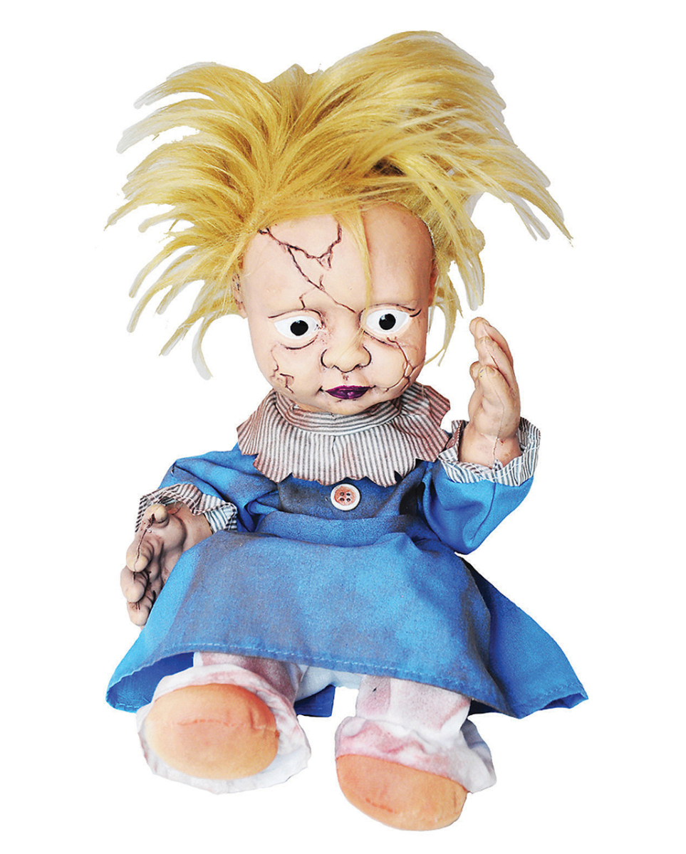 Strampelndes Zombie Baby mit Sound und Bewegung 28 cm Gruselige Puppe mit Bewegung und Geräuschen Kaum liegt dieser Satansbraten auf dem Rücken, fängt das Geplerre an: Die Halloween Baby Animatronic kreischt, strampelt und ist die perfekte Horror Deko für alle, die gruselige Animatronics lieben. Unser strampelndes Zombie Baby mit Sound und Bewegung ist etwa 28 cm groß und aus Kunststoff und Polyester gefertigt. Sie wird durch einen Knopf am Arm aktiviert und benötigt 3 x AA-Batterien (nicht enthalten). Lieferumfang: 1 x Strampelndes Zombie Baby mit Sound und Bewegung 28cm Farbe: Blau, Beige. Weiß, Blond Größe: ca. 28 cm Batterien: Es werden 3 x AA-Batterien benötigt, nicht inkl. Material: Kunststoff, Polyester, Kunsthaar Gruselige Horror Puppe mit Bewegung und Kreisch-Sound Strampelt mit Armen und Beinen Zerzaustes Haar und fiese Zombie Fratze Halloween Zombie-Puppe mit blauem Kleid Halloween Animatronic für Gruselpartys Aktivierung des Halloween Gimmicks über Knopf am Arm Als Geschwisterchen passt unsere hervorragend dazu