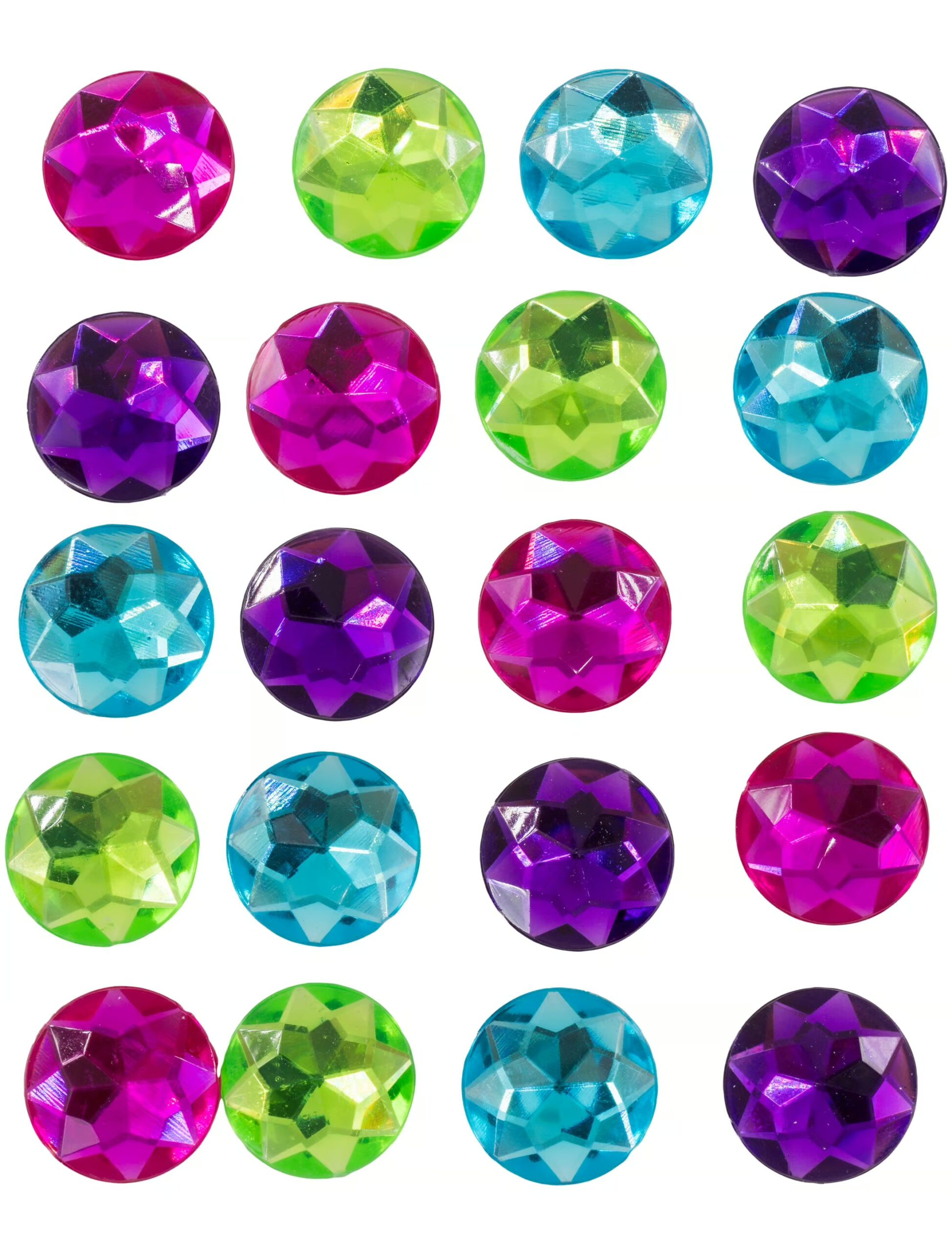 Die zwanzig bunten Strass-Sticker aus Polyacryl lassen Mädchen-Herzen höherschlagen. In vier hübschen Farben (gelb, pink, türkis, blau) wirken sie wie geschliffene Edelsteine, mit denen Du eine nette Einladungskarte, ein Bild oder diverse Accessoires verzieren kannst. Wie wäre es mit einer Edelstein-besetzten Schatztruhe? Mit dem stattlichen Durchmesser von 1,9 cm ist der Blickfang garantiert.