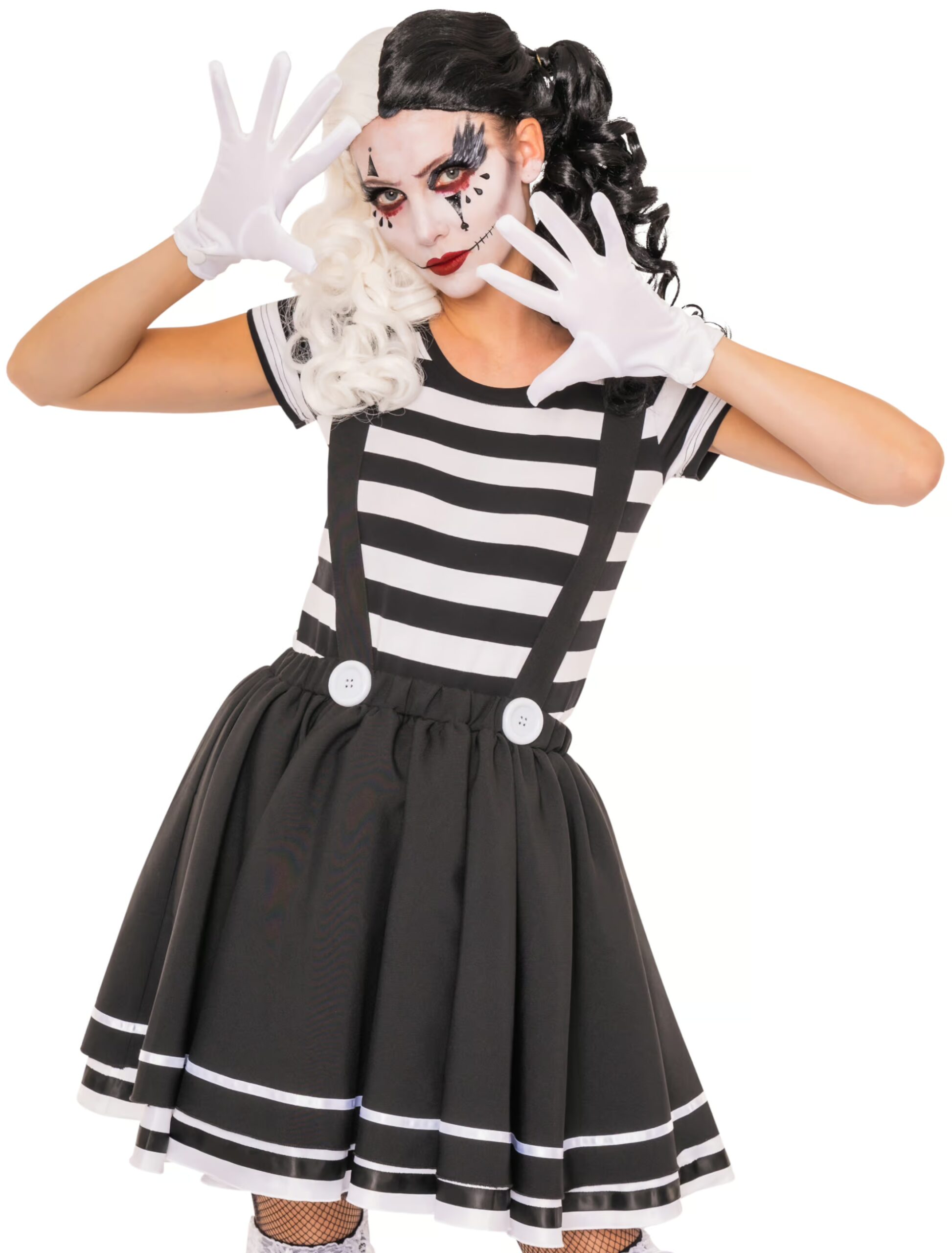 Dieses schwarz-weiß gestreifte T-Shirt in Regular-Fit Passform lässt sich wunderbar mit den unterschiedlichsten Kostümen kombinieren. Für sich alleine ist dieses T-Shirt allerdings auch alltagstauglich, denn es passt gut zu schwarzen Hosen oder Röcken. Wenn Du nach einem zuckersüßen Outfit für die nächste Kostümparty suchst, kombiniere dieses T-Shirt zu unserem separat erhältlichen schwarzen Rock mit Hosenträgern, Netzstrümpfen und Perücke. Weiße Handschuhe und Gesichtsschminke geben Deinem unwiderstehlichen Look das gewisse Etwas.