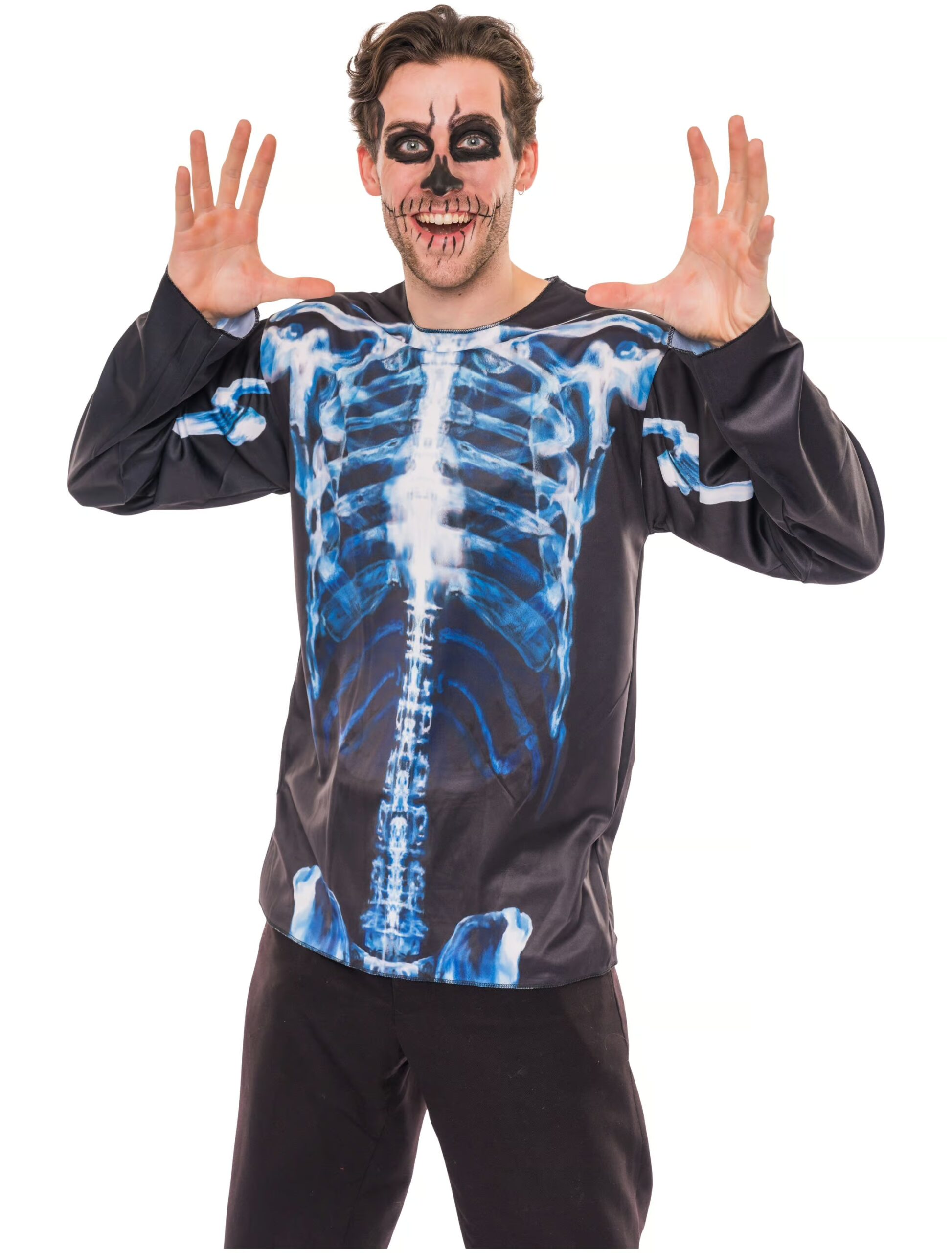 T-Shirt Skelett langarm Herren schwarz L, ideal für Karneval & Fasching