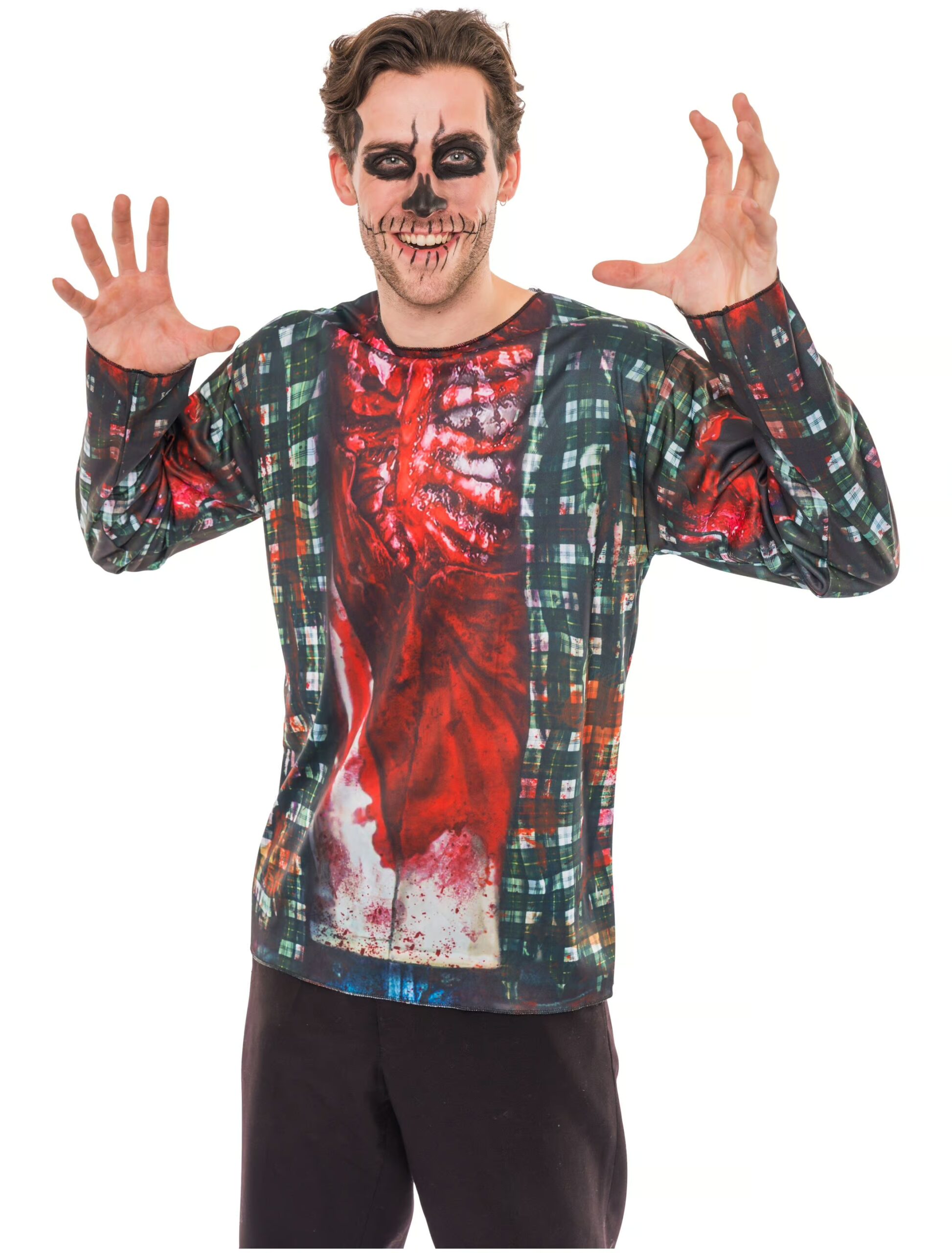 T-Shirt Zombie langarm Herren schwarz XL, ideal für Karneval & Fasching