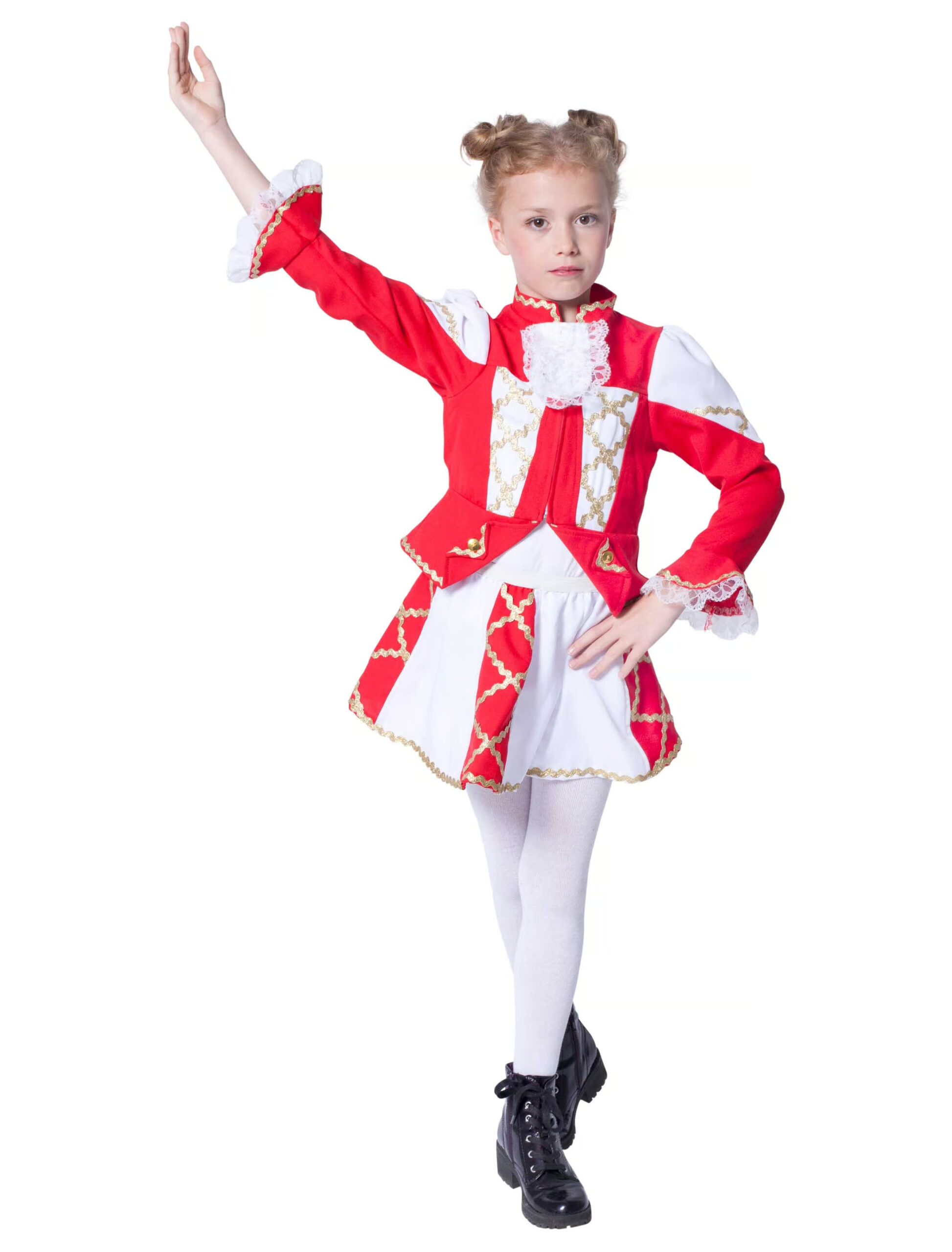 In Kölle darf ein echtes Tanzmariechen, oder auch Funkenmariechen genannt, im Karneval nicht fehlen. Also, hoch das Bein, rein in unser Tanzmariechen Kostüm und los geht es. Unser Kostüm ist zweiteilig, bestehend aus Rock und Jacke. Beide Teile sind in Rot-Weiß gehalten und sind zusätzlich mit einer edlen Goldborte verziert. Das Jabot besteht aus weißer Spitze und ist dank des Klettverschlusses abnehmbar. Das Material besteht zu 100% aus Polyester.