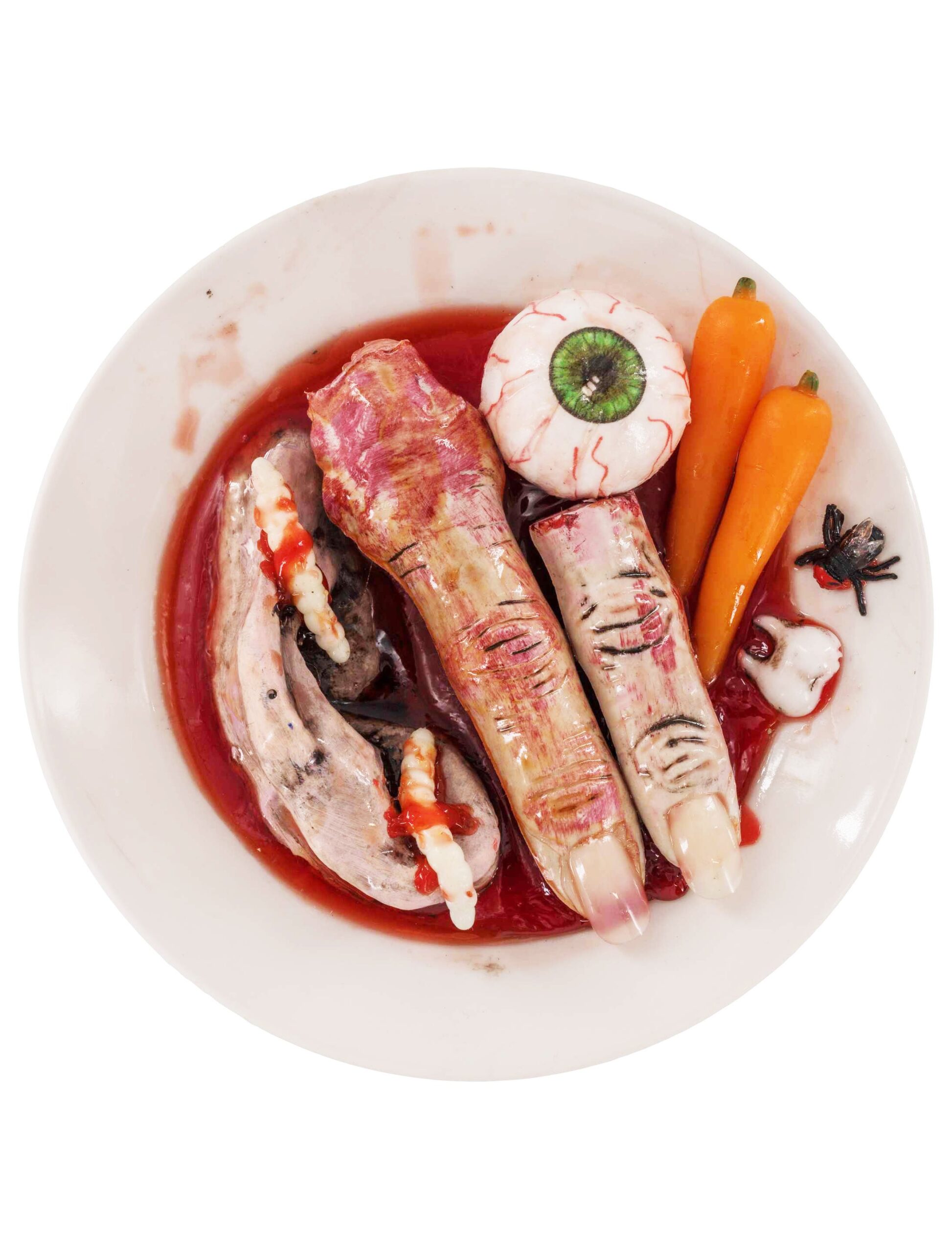 Für die gruseligsten Halloween-Mahlzeiten! Unser blutiger Teller mit Körperteilen und Maden ist das perfekte Accessoire, um deine Gäste richtig zu schocken! Mit blutigen Körperteilen und wriggling Maden wird dieser Teller deine Gäste so richtig in Gruselstimmung versetzen. Gekochtes Auge gefällig? Oder vielleicht ein paar Finger zum Mitnehmen? Also, wenn du es liebst, deine Gäste zu überraschen und gleichzeitig für die perfekte Horror-Atmosphäre zu sorgen, dann schnapp dir unseren blutigen Teller mit Körperteilen und Maden – deine Party wird garantiert unvergesslich werden!