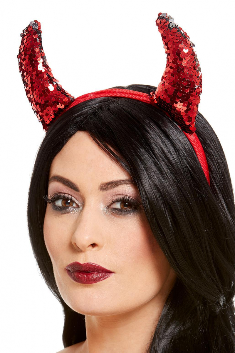Teufelshörner mit wendbaren Pailletten in Rot-Silber als Kostümzubehör für Karneval und Halloween Glitzernde Teufelchen Hörner für die elegant funkelnde Höllenfürstin Auch eine Teufelin mag es elegant. Die Teufelshörner mit wendbaren Pailletten in Rot-Silber sind das ideale Accessoires für die Höllenfürstin mit Sinn für Stil und Anmut. Dein mystischer Charme wird mit dem Haarreifen auf glänzende Weise unterstrichen. Damit verführst du auch die keuchesten Engel zur Sünde, wenn sie sich auf der Halloween- oder Karnevalsparty von deinem Funkeln und Glitzern blenden lassen. Verleihe deiner teuflischen Seite einen elegant anmutenden Ausdruck. Die Teufelshörner mit wendbaren Pailletten in Rot-Silber sind das Highlight deines Teufel Kostüms. Je nach Stimmung zeigst du die Wende-Pailetten in verführerischem Rot oder in glamourösem Silber. Lieferumfang: 1 x Teufelshörner mit wendbaren Pailletten in Rot-Silber Farbe: Silber / Rot Größe: Einheitsgröße für Erwachsene Material: Kunststoff/ Polyester Die Pailletten lassen sich in zwei Richtungen streichen und ändern dabei Ihre Farbe von Rot zu Silber