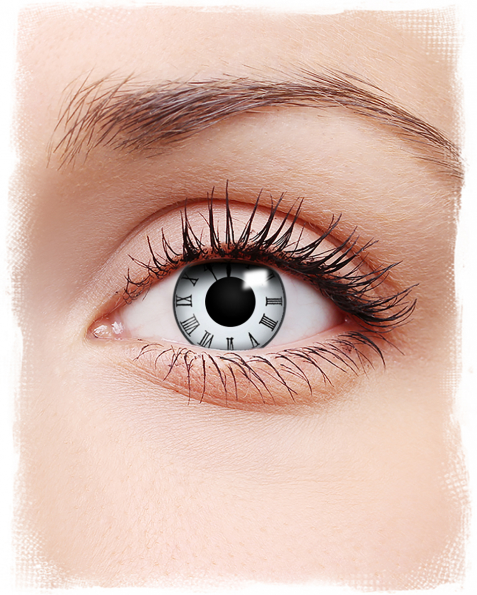 Weiße Tick Tock Uhr Kontaktlinsen für Halloween und Fasching Weiße Uhr-Motiv Kontaktlinsen für dein Wonderland und Faschings Kostüm Die weichen Tick Tock Uhr FX Kontaktlinsen kommen besonders bei Fantasy und Wonderland Kostümen am Cosplay Event super an. Mit den weißen Tick Tock Uhr Kontaktlinsen kannst du deine Augenfarbe passend zu deinem Halloween Kostüm verändern. Diese farbigen Kontaktlinsen sind für jeden Augentyp geeignet. Zusatzinformationen (Weiße Tick Tock Uhr Kontaktlinsen für Halloween und Fasching): Inhalt: 2 Stück farbige Linsen im Fläschchen Art: weiche Kontaktlinsen Material: 58% Polyhema, 42% Wassergehalt Radius (BC): 8.60 mm Durchmesser (DIA): 14.5 mm Ohne Dioptrin ( ohne Sehstärke ) Bis zu 3 Monate anwendbar, bei entsprechender Pflege KONTAKTLINSEN Pflegehinweise für Ihre Kontaktlinsen Sie haben sich mit den weichen Effektkontaktlinsen für ein Qualitätsprodukt entschieden, das nach internationalen Standards gefertigt wurde. Um sicherzustellen, dass Sie Ihre Linsen sicher und bequem bei bester Sicht tragen können, sollten Sie die folgenden Hinweise sorgfältig lesen und zu jeder Zeit beachten. Bitte bewahren Sie diese Hinweise auf, um bei eventuellen Nachfragen später noch einmal nachschlagen zu können. Falls Sie zum ersten Mal Kontaktlinsen verwenden, sollten Sie die Tragezeit der Linsen langsam steigern. Tragen Sie die Linsen am ersten Tag nicht länger als 4 Stunden und verlängern Sie die Tragezeit täglich um 2 Stunden. Länger als 8 Stunden am Stück sollten die Linsen aber niemals getragen werden. Die Linsen sind des weiteren nicht für Personen unter 18 Jahren geeignet. Anwendungshinweise Berühren Sie Ihre Linsen nur mit sauberen, trockenen Händen. Achten Sie beim ersten Öffnen der Verpackung darauf, dass die Linse intakt und komplett von Flüssigkeit umgeben ist. Benutzen Sie die Linse nicht, wenn sie ausgetrocknet oder beschädigt ist. Die Linsen sind für einen Tragezeitraum von 3 Monaten konzipiert und sollten danach dementsprechend entsorgt werden. Die Linsen sind zwingend vor dem ersten Gebrauch aus der Originalverpackung heraus zu nehmen und für mindestens 4 Stunden in frische Kontaktlinsenlösung zu legen. Erst dann ist die Kontaktlinse nach Anleitung einsetzbar. Bitte beachten Sie genau weitere Pflegehinweise. Einsetzen 1. Nehmen Sie eine Linse aus der Verpackung. 2. Legen Sie die Linse auf den rechten Zeigefinger und stellen Sie auf der Fingerkuppe fest, ob die Linse richtig herum liegt. 3. Halten Sie Ihr oberes Augenlid mit Ihrem linken Zeige- und Mittelfinger weit geöffnet, während Sie das untere Lid mit Ihrem rechten Mittelfinger geöffnet halten. 4. Platzieren Sie die Linse auf Ihrem Auge. 5. Wiederholen Sie die Schritte 1.–4. mit der anderen Linse. Herausnehmen Schauen Sie nach oben und halten Sie Ihr unteres Augenlid nach unten. Drücken Sie die Linse mit Daumen und einem Finger leicht zusammen und heben Sie sie dann heraus. Reinigung und Desinfektion Befolgen Sie immer die Anweisungen auf der Flasche Ihrer Kontaktlinsenlösung. Sollten Ihre Linsen einmal austrocknen, sind sie sehr empfindlich und müssen dementsprechend mit äußerster Vorsicht gehandhabt werden. Legen Sie die Linsen dann für mindestens 4 Stunden in frische Kontaktlinsenlösung. Reinigen und desinfizieren Sie Ihre Linsen dann erneut und überprüfen Sie sie sorgfältig auf eventuelle Schäden. Wenn Sie Zweifel an der Unversehrtheit der Linsen haben, suchen Sie Ihren Optiker auf, bevor Sie Ihre Kontaktlinsen wieder tragen. Hinweis: Wir empfehlen, einen Optiker oder Augenarzt aufzusuchen, der Ihnen die sachgemäße Verwendung von Kontaktlinsen genau erklärt und mit Ihnen üben kann. Vorsichtsmaßnahmen Denken Sie stets daran, dass die Gesundheit Ihrer Augen entscheidend für Ihr gutes Sehvermögen ist. Gehen Sie kein Risiko durch Nachlässigkeit oder Eitelkeit ein und halten Sie sich deshalb an die nachfolgenden Tragehinweise. 1. Wir empfehlen Ihnen die Linsen monatlich zu erneuern und täglich zu pflegen. 2. Bei Fragen zur korrekten Handhabung von Kontaktlinsen empfehlen wir Ihnen die Konsultation Ihres Optikers. 3. Benutzen Sie niemals bereits benutzte Kontaktlinsenlösung noch einmal. 4. Befolgen Sie die Anleitung Ihrer Kontaktlinsenlösung bezüglich Lagerzeiten und Behandlungsweise. 5. Entfernen Sie die Linsen und suchen Sie einen Optiker auf, wenn Ihre Augen schmerzen, sich röten, oder brennen, wenn Ihre Augen tränen oder Ihre Sicht durch Lichtreflexe oder Farbfelder gestört ist. 6. Entfernen Sie die Linsen, bevor Sie zu Bett gehen oder sich länger hinlegen. 7. Halten Sie Ihre Fingernägel kurz, weil lange Nägel die Linsen beschädigen können. 8. Tragen Sie die Linsen nicht, wenn Sie in Behandlung bei einem Augenarzt sind bzw. konsultieren Sie Ihren Arzt vorher. 9. Benutzen Sie keinen Speichel, um Ihre Linsen anzufeuchten oder zu reinigen. 10. Tragen Sie Ihre Kontaktlinsen nicht, wenn Sie Augenmedikamente oder Augentropfen verwenden. 11. Tragen Sie niemals Linsen, wenn diese beschädigt oder verkratzt sind oder wenn sie Ablagerungen aufweisen, die sich nicht entfernen lassen. 12. Tragen Sie Augenmake-up nach dem Einsetzen der Linsen auf und entfernen Sie es nach dem Herausnehmen der Linsen. Verwenden Sie möglichst faserfreie, wasserlösliche Augenkosmetika und ölfreie Produkte. 13. Benutzen Sie keine scharfen Haushaltsreiniger, während Sie die Linsen tragen. 14. Verwenden Sie niemals Haushaltsprodukte (wie z.B. Desinfektionsmittel) oder Leitungswasser zur Reinigung Ihrer Kontaktlinsen oder Aufbewahrungsdosen. Sie können Ihren Augen ernsthaft schaden. 15. Tragen Sie die Linsen nicht in verrauchter oder feuchter Umgebung. 16. Halten Sie die Aufbewahrungsdosen der Linsen sauber. 17. Gehen Sie mit den Linsen nicht schwimmen, es sei denn Sie tragen eine wasserdichte Schwimmbrille. 18. Bewahren Sie die Linsen außerhalb der Reichweite von Kindern auf. 19. Lassen Sie weder Haarspray noch sonstige kosmetische Sprays mit Ihren Kontaktlinsen in