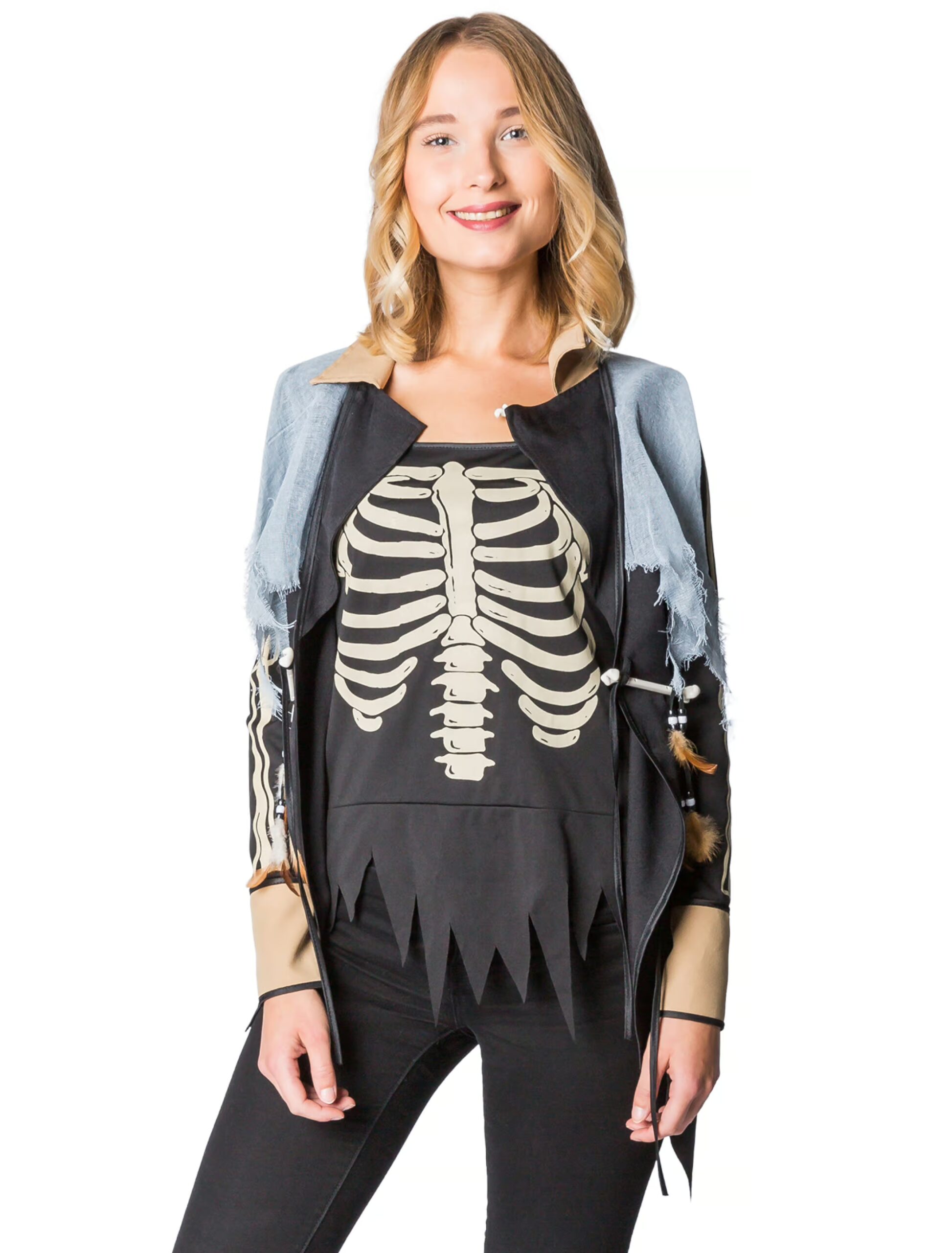 Top Skelett Damen schwarz 36, ideal für Karneval & Fasching
